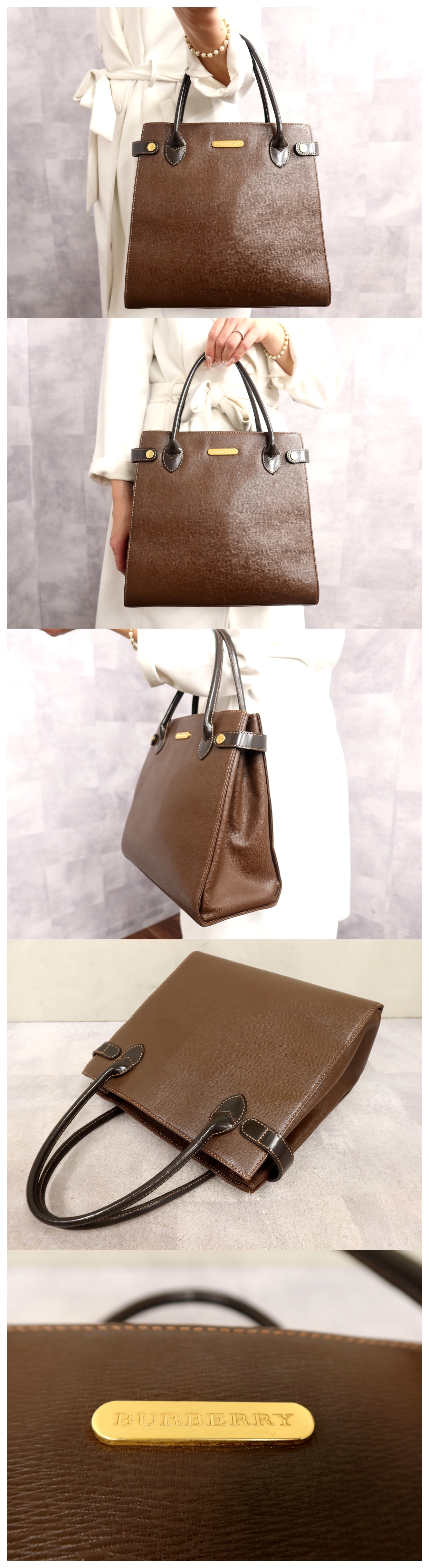 ●超美品●BURBERRY バーバリー●内ノバチェック●ロゴ金具●カーフ レザー 本革●ハンド トート バッグ●ブラウン●G金具●B5●Js65123 收藏