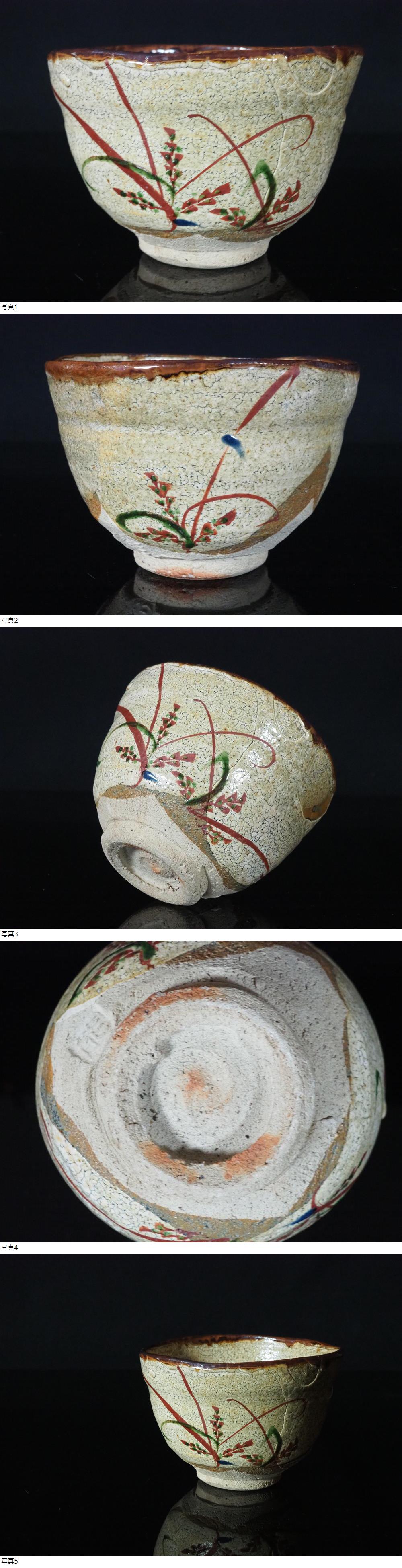 【GK】人間国宝 藤本能道 赤絵花文茶碗 茶道具 識箱 無傷 本物保証! 收藏