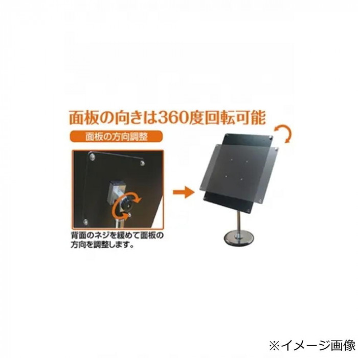| 素材・材質 | ポール:ステンレス400 ベース部:φ300M脚スチール製(表面コートステンレス) 化粧ビス:φ20アルミ(アルマイト仕上) 面板:アルミ複合板(白)3mm+アクリル板(透明)2mm |