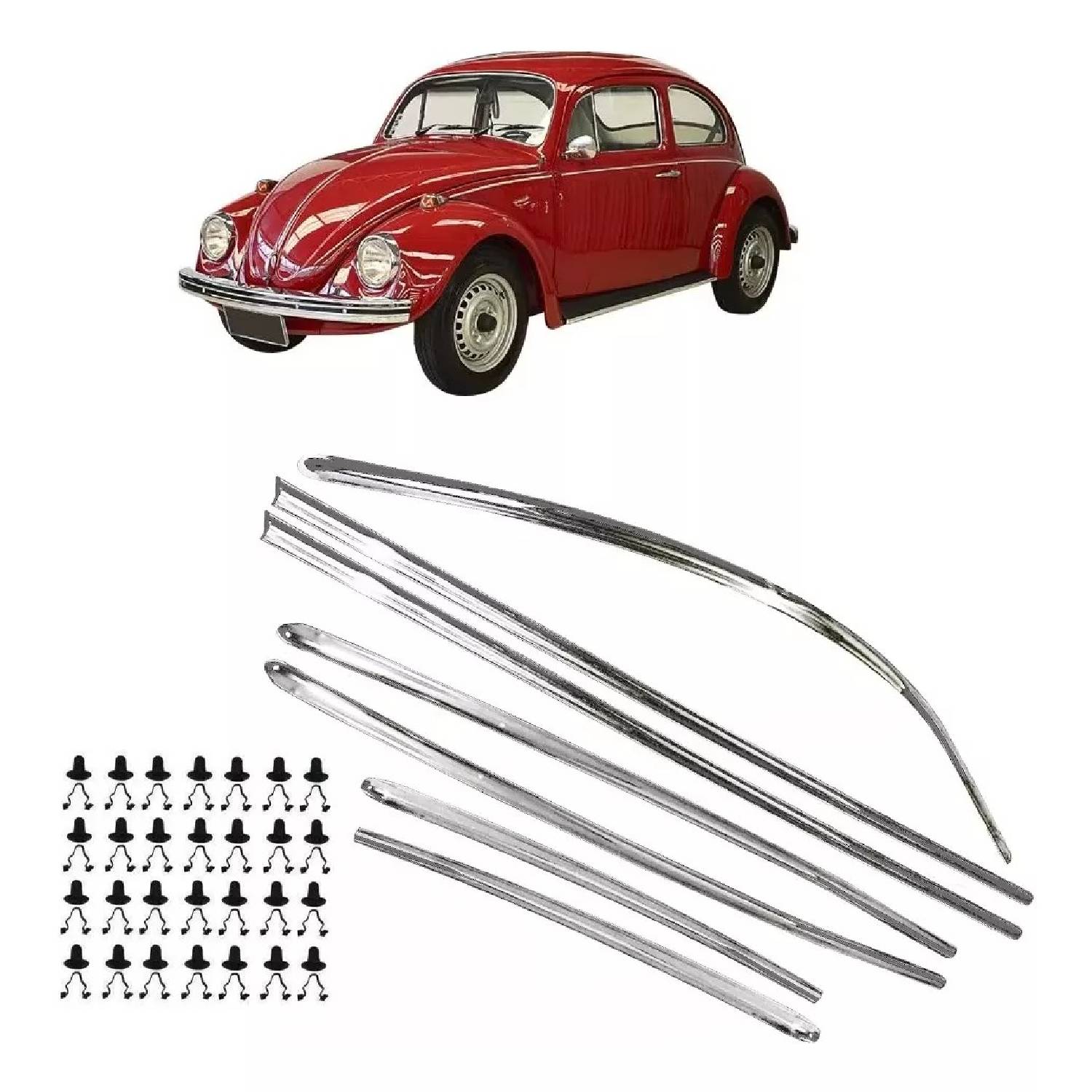7個セット外装 ボディ モールディング トリム アルミ製 幅2cm 広い クリップとシール42個付き 空冷VW ワーゲン T1 ビートル 1963-1966年式 收藏