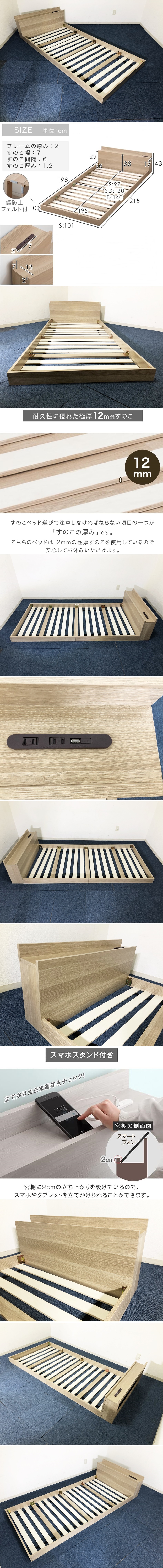 シングルサイズ ローベッドYB05 USBポート・100Vコンセント2口付き 宮棚付シャビーアッシュフレーム カントリー調シンプルデザイン 收藏