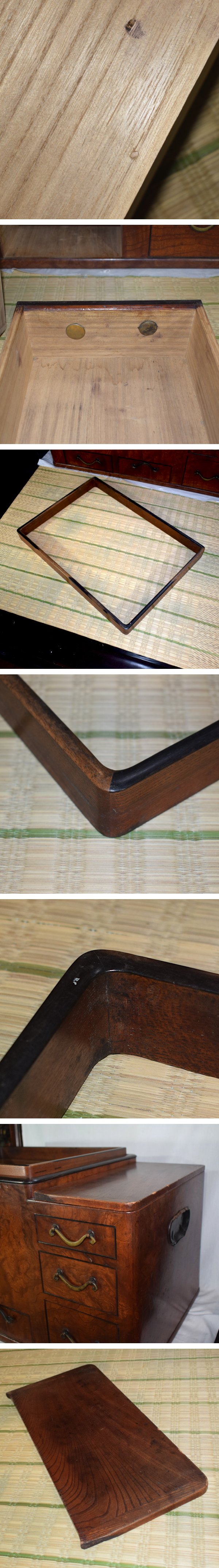 | 商品説明 | 【サイズ:全体】 横幅 約 75cm 高さ 約 41cm 奥行 約 72cm 本体 ケヤキ 引き出し 桐 (一部) 取っ手 真鍮 一部 黒柿使用 |