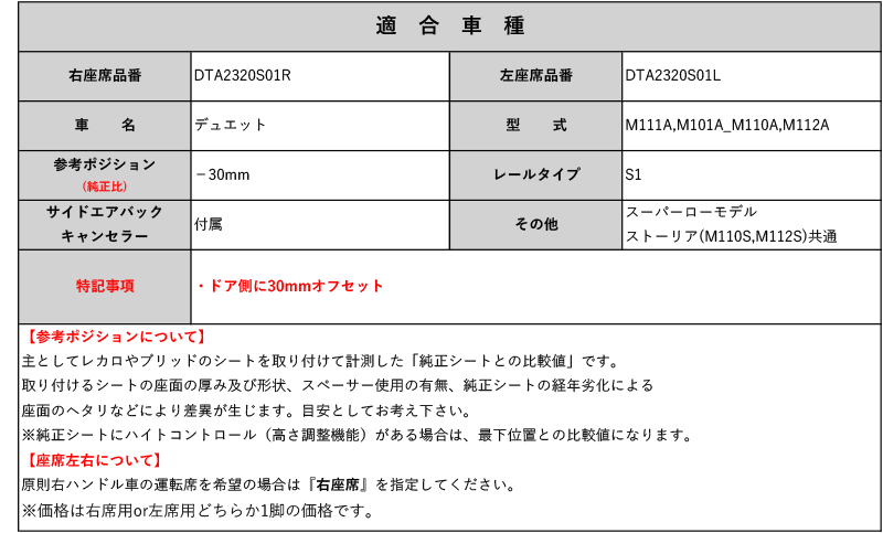 [ブリッドフルバケ]M100A系 デュエット用シートレール(スーパーローモデル)[N SPORT製][保安基準適合] 收藏