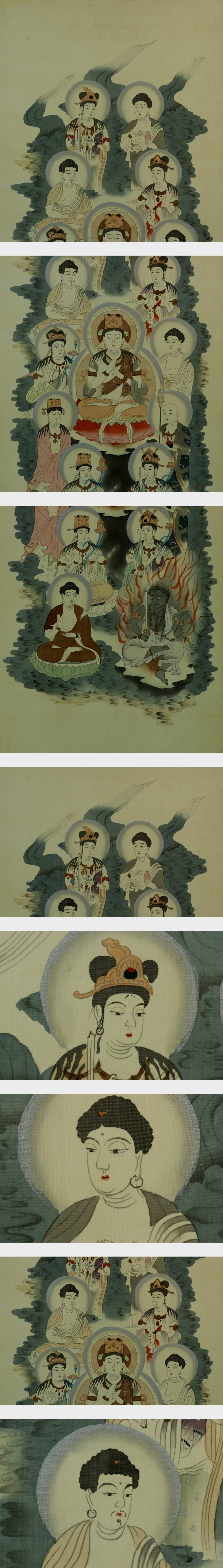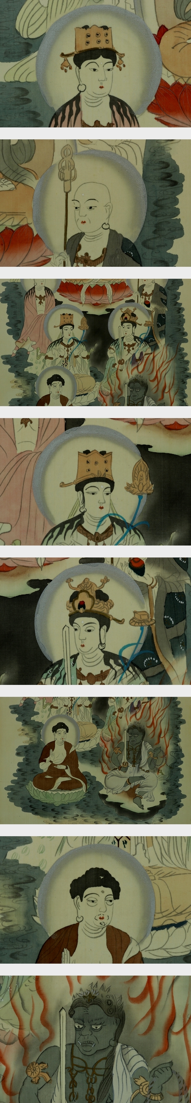 | №2110205【肉筆】仏画【十三佛】◆絹本◆額 | |