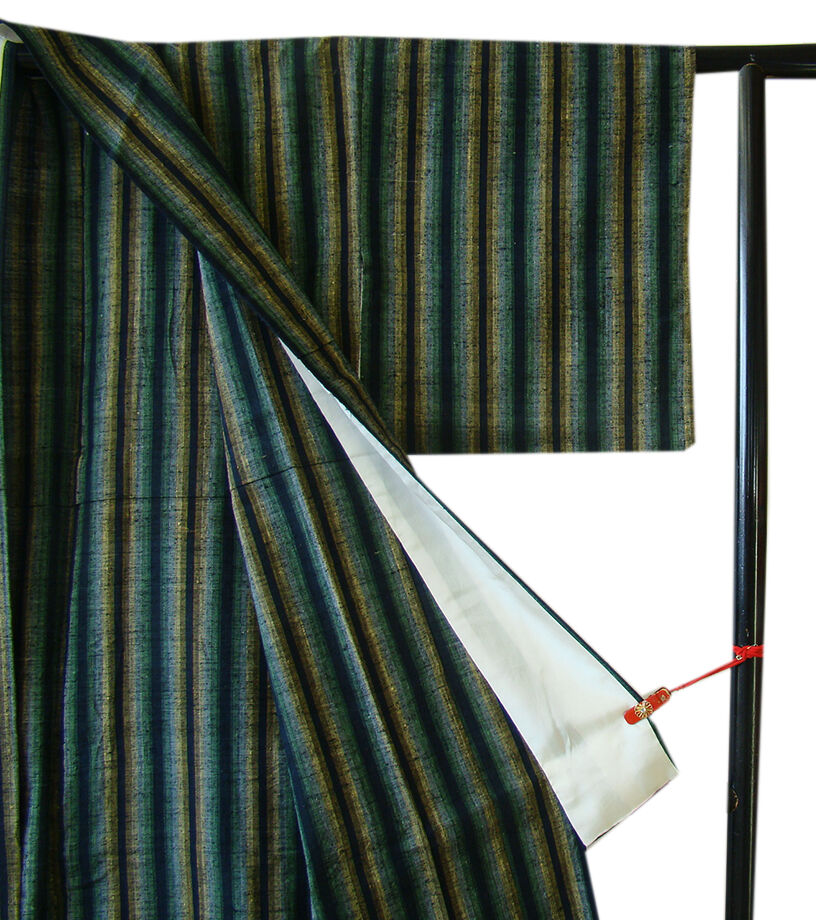 | 商品説明 | こちらのお品は「単衣」ですので5月、6月、9月にお召頂ければと思います。 着物には、大きく分けて「袷(あわせ)の着物」と「単衣(ひとえ)の着物」と「夏着物」があります。 反物(表地)を着物に仕立てるときに、裏地類をつけるものを袷の着物、 つけないものを単衣の着物と呼び、胴裏や八掛といった裏地がつかない一枚ものの着物です。 また裏地がないため、座る時などにヒップのラインが目立たないよう、 居敷当て(いしきあて)の生地をつけることもあります。 居敷当ては付いておりません。 とてもしなやかなふっくらとした柔らかな手触りの着心地良い単衣仕立ての紬地、 渋い緑、鼠、黄土、黒色等の縞柄の織柄が粋な着物姿を演出しております、 |