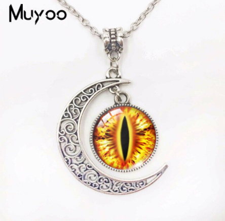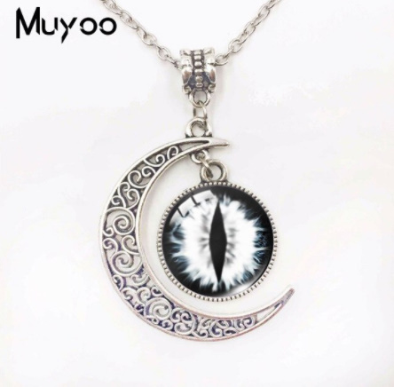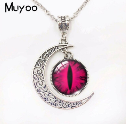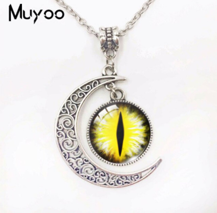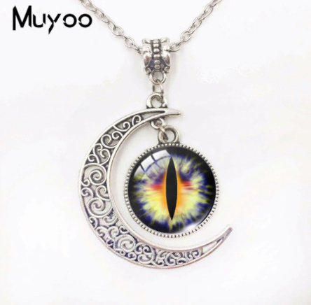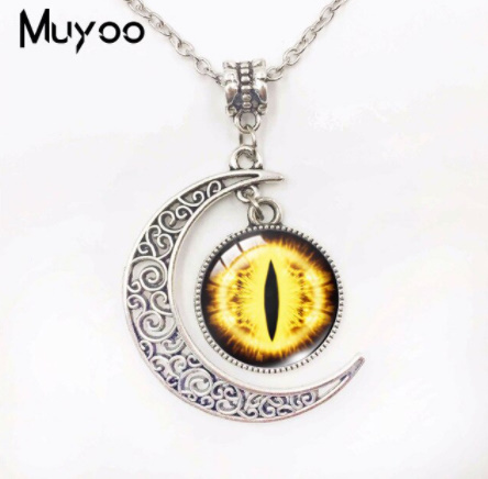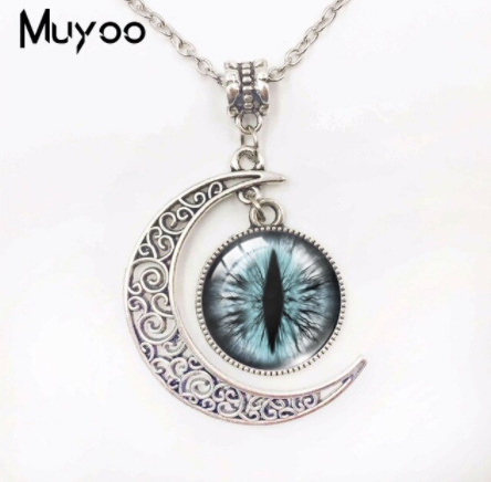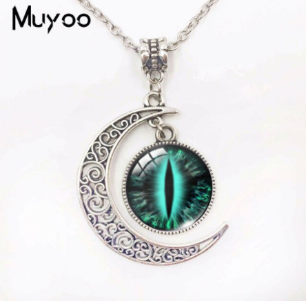 LGH512猫目 ドラゴン目 デザイン ムーンペンダント ハンドメイド ヴィンテージ 猫の目 ガラスドーム ムーンネックレス 收藏