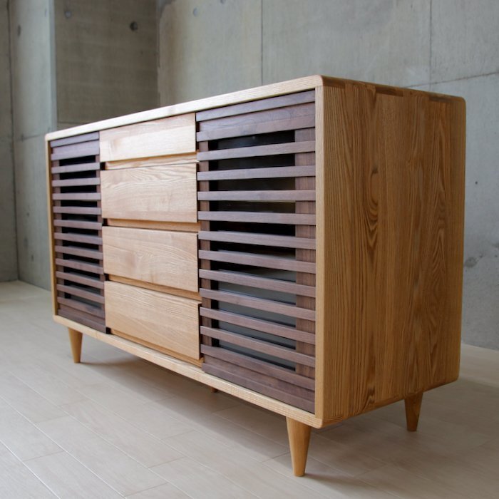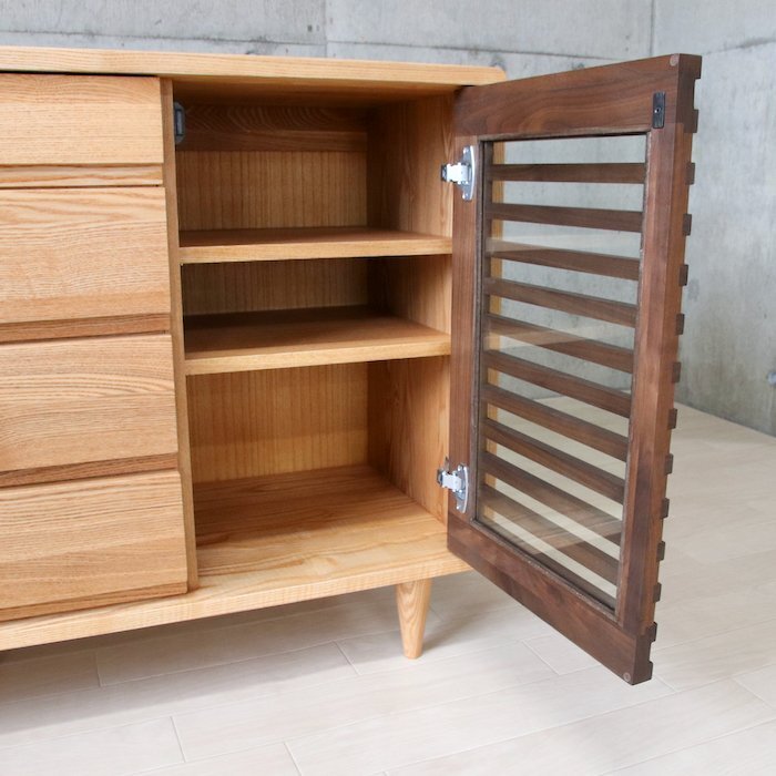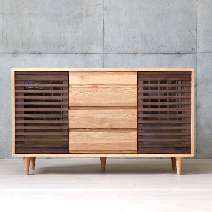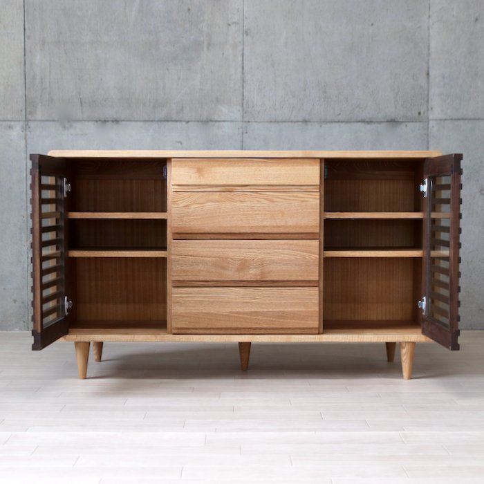 タモ無垢材 匠デザイン 120 サイドボード 北欧 ウォールナット 格子 キャビネット テレビ台 テレビボード ハイタイプ 収納 完成品 脚付き 收藏