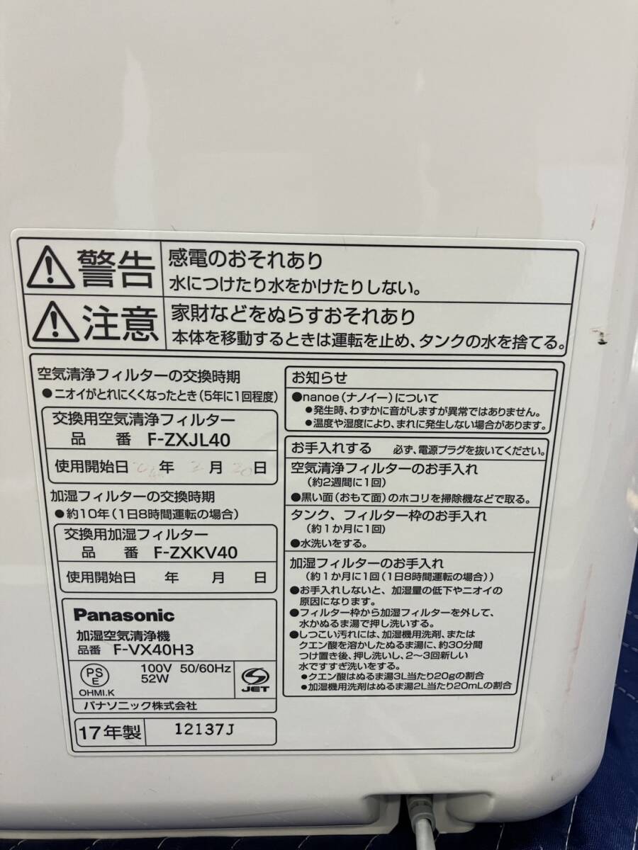 ◆◇NO98 Panasonic パナソニック 加湿空気清浄機 F-VX40H3 動作確認済み nanoe ナノイー エコナビ ホワイト さいたま市 緑区◇◆ 收藏