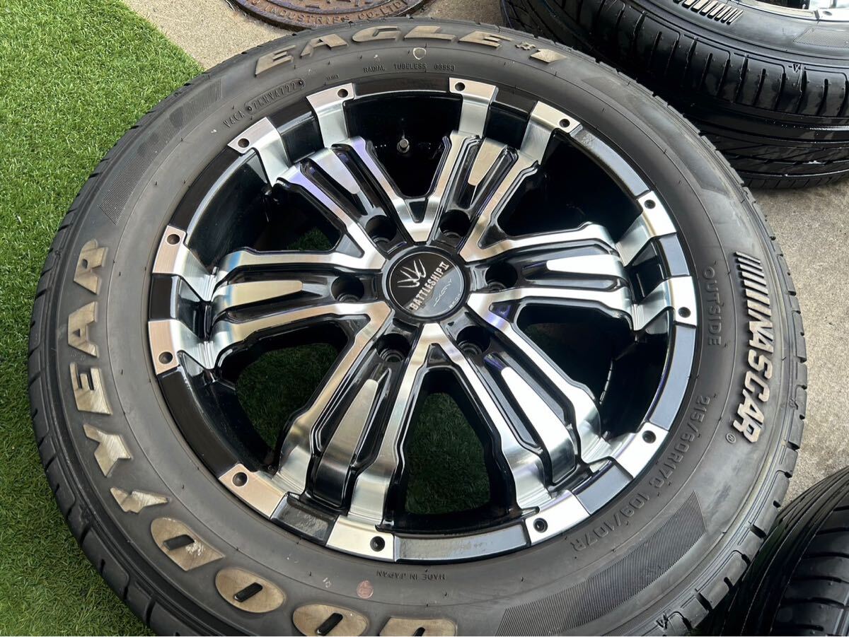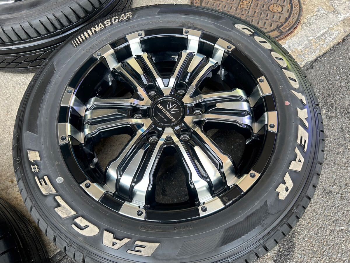ロクサーニバトルシップⅡグッドイヤー イーグル ナスカー参考資料ハイエースホイール 17インチ新品¥49,500/本 4本¥198,000タイヤ 新品215/60R17 4本セット ¥72,400 合計¥270,400タイヤも七部と書いてますがほぼタイヤ交換して半年ですがほぼ乗ってない状況です。九部に近いです。 大阪府摂津市鳥飼上4-2-26 REBOOTTIPOリブートティーポ 0120-5489-52 担当太田