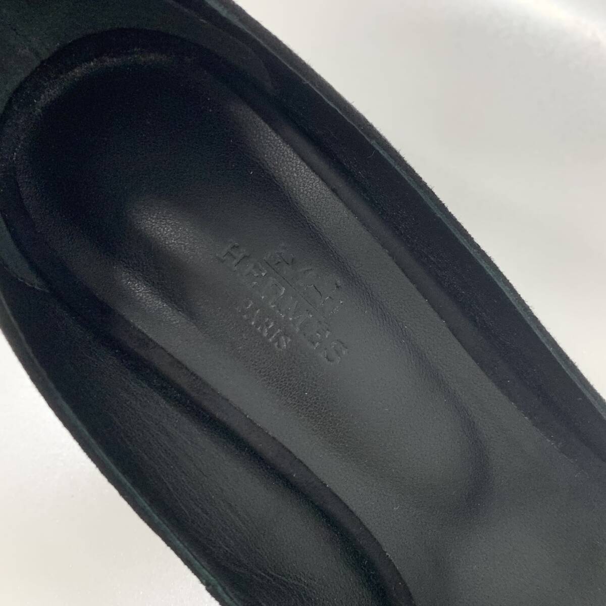 M11434 エルメス ガーリー シェーヌダンクル スエード ストラップ メタルヒール パンプス ブラック 收藏