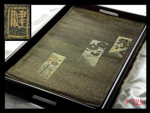 蔵【テ725】西陣逸品 作家物 黒色地 気品豊かに 正絹太鼓柄高級美術袋帯 ◇検◇簪着物名古屋帯和装小物帯締め 收藏
