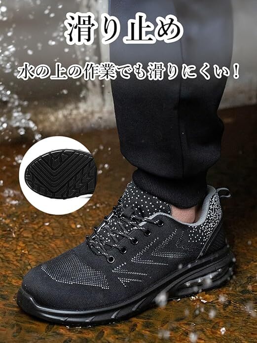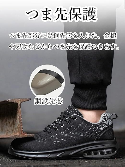 安全靴 エアークッション 作業靴 通気性 踏み抜き防止 軽量 鋼先芯入り 黒 耐摩耗 防滑 衝撃吸収 サイズ:26cm 收藏