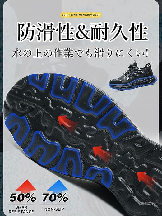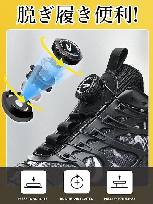 安全靴 ダイヤル式 作業靴 軽量 通気性 踏み抜き防止 鋼先芯入り 耐摩耗 耐滑 衝撃吸収 黒 サイズ:26.5cm 收藏