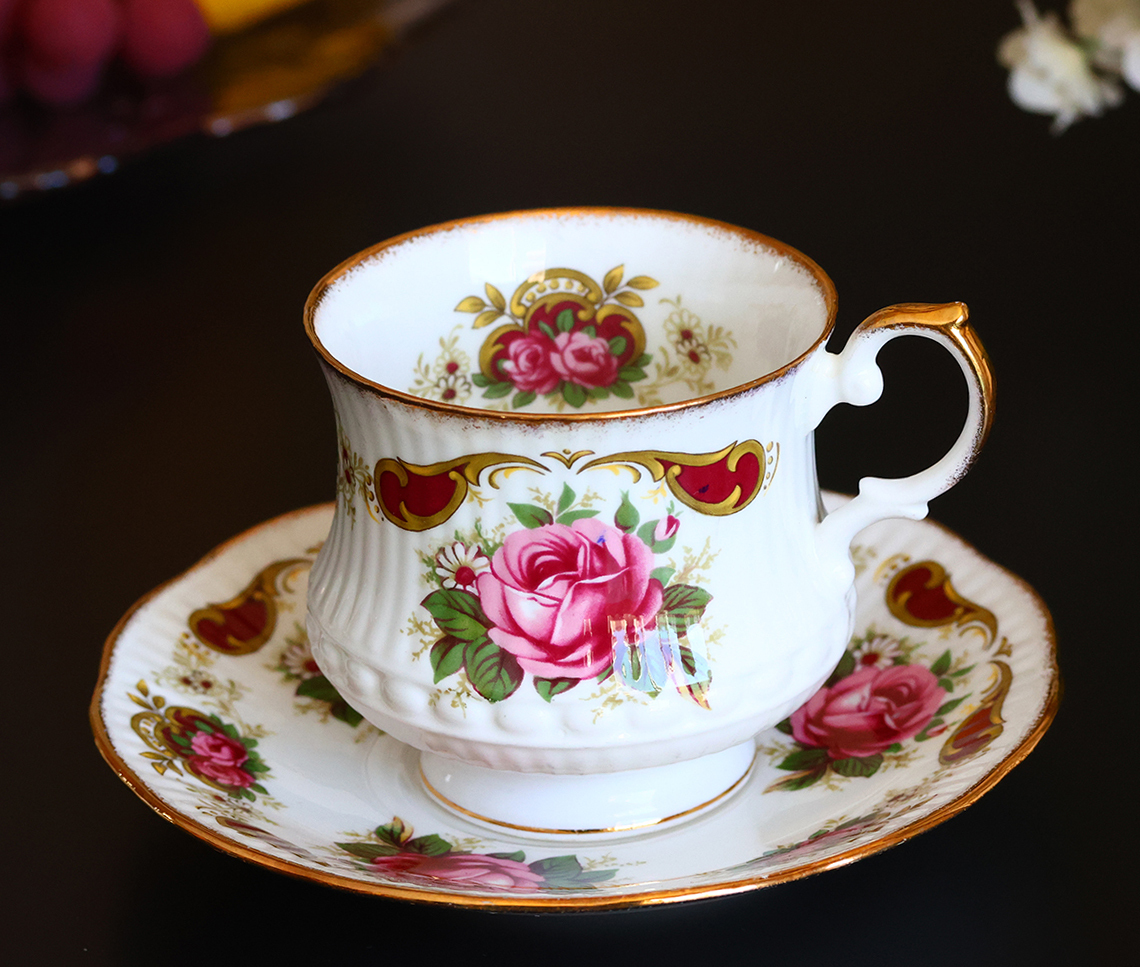 英国 1930年代 Royal Dover ローズ 薔薇 ゴールド カップ&ソーサー England ボーンチャイナ 磁器 コーヒー ティー 紅茶 ビンテージ 收藏