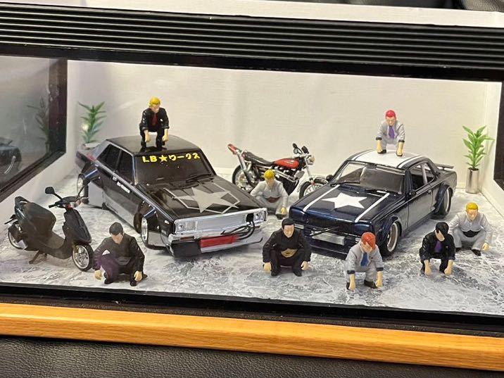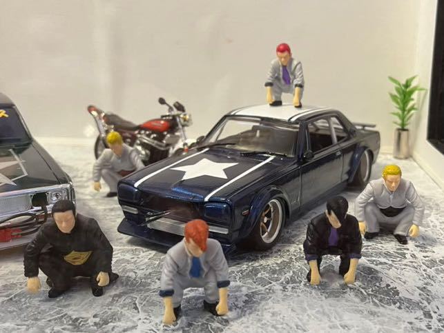 1/24スケール ヤンキーフィギュア2体 ジオラマ 暴走族 ヤンキー 族車 旧車會 街道レーサー ミニチュア プラモデル、ミニカーと展示に1/18? 收藏