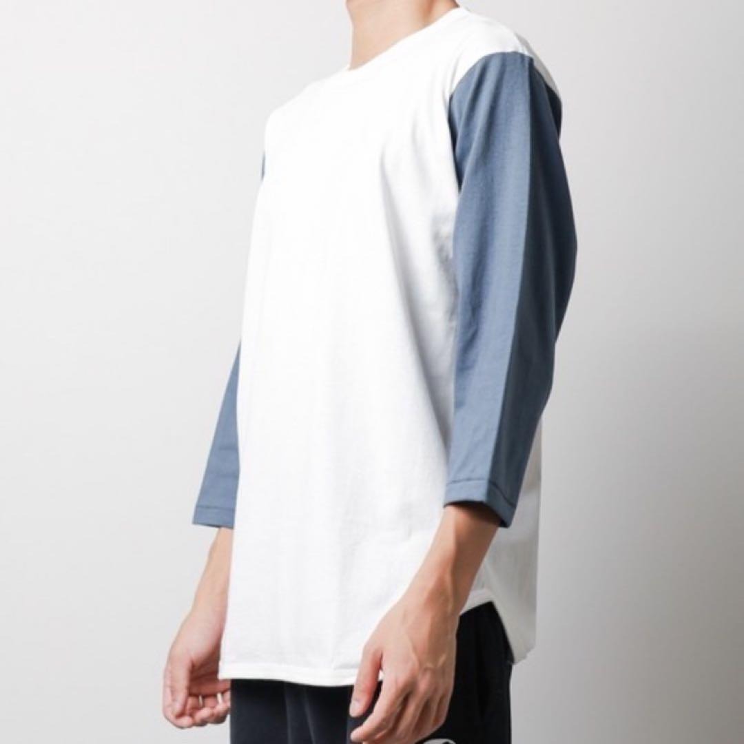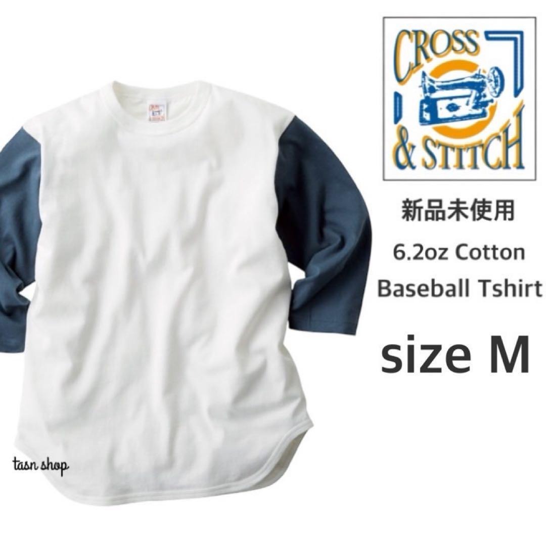 【クロスステッチ】新品 7分袖 ベースボールTシャツ デニム×ナチュラル Mサイズ CROSS & STITCH OE1230 收藏