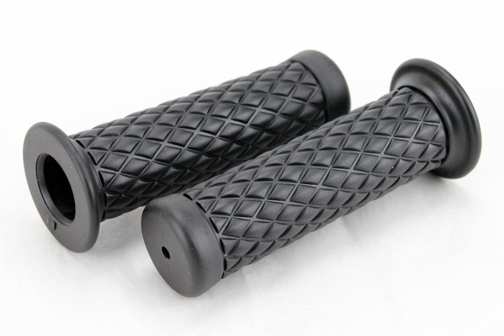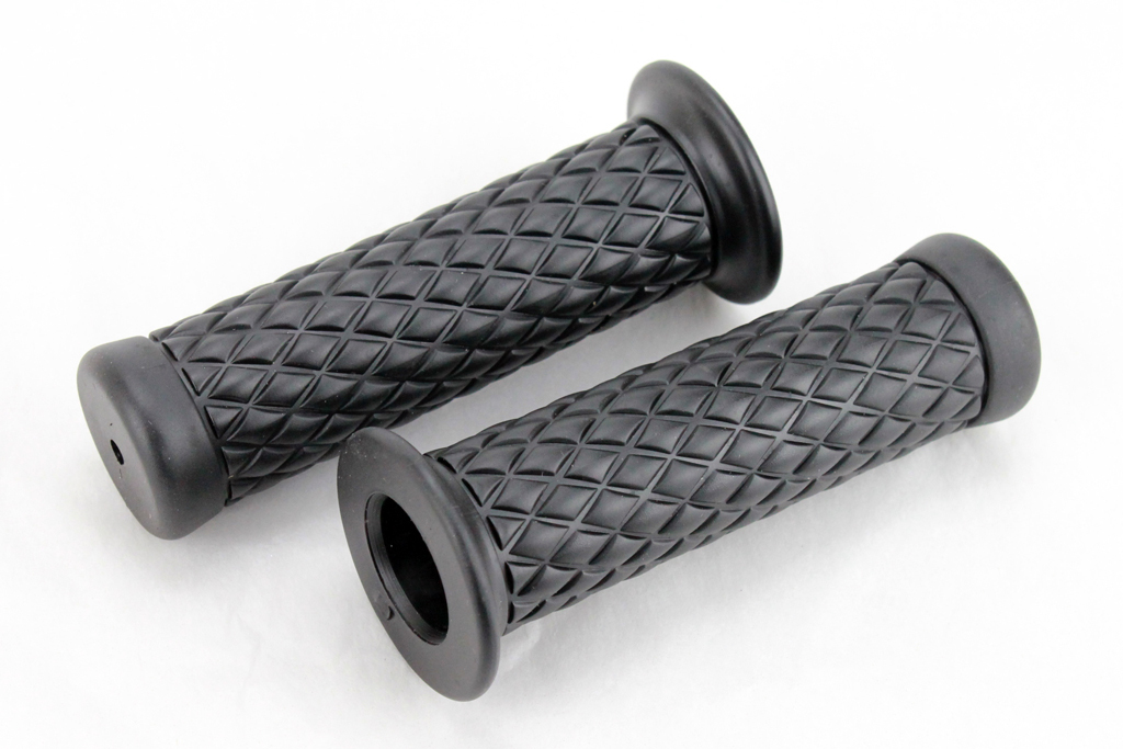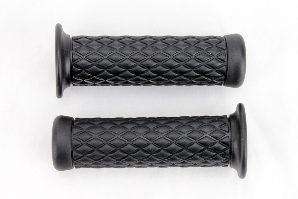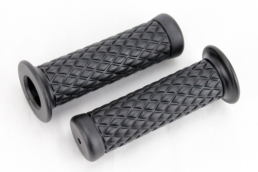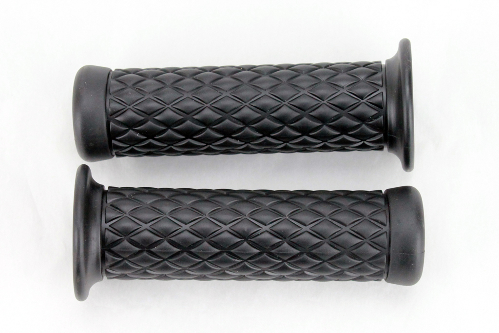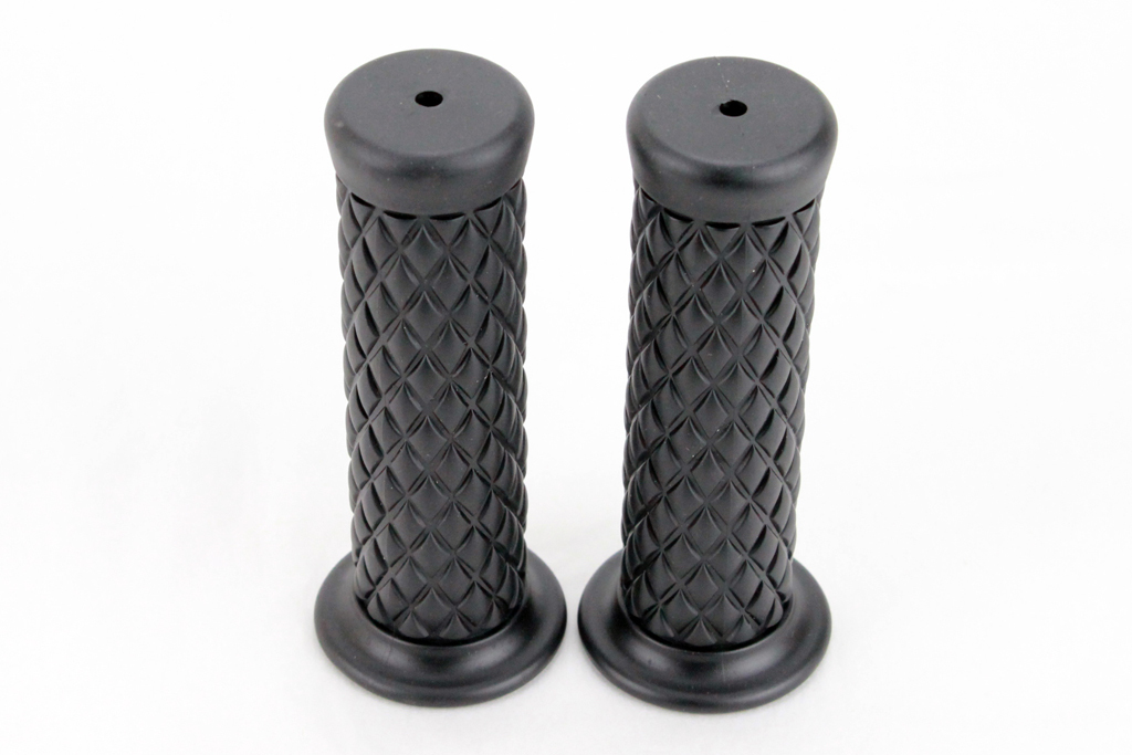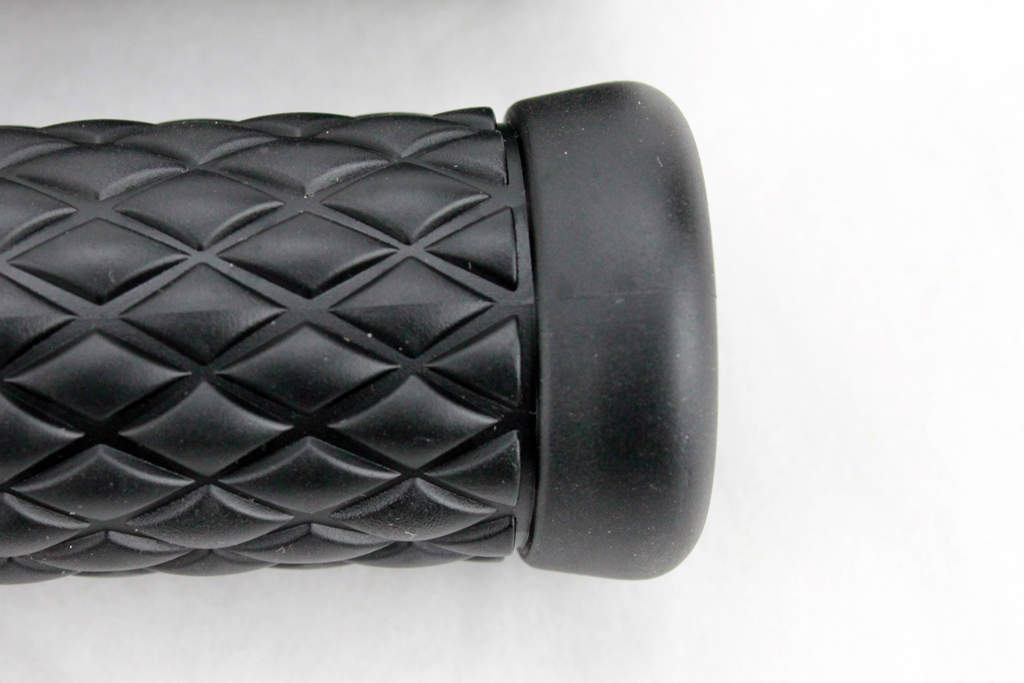 非貫通 ラバーグリップ 左右セット ダイヤ柄 黒 ゴムグリップ ブラック カスタムグリップ エンド付き 汎用 22.2mmハンドル用 收藏