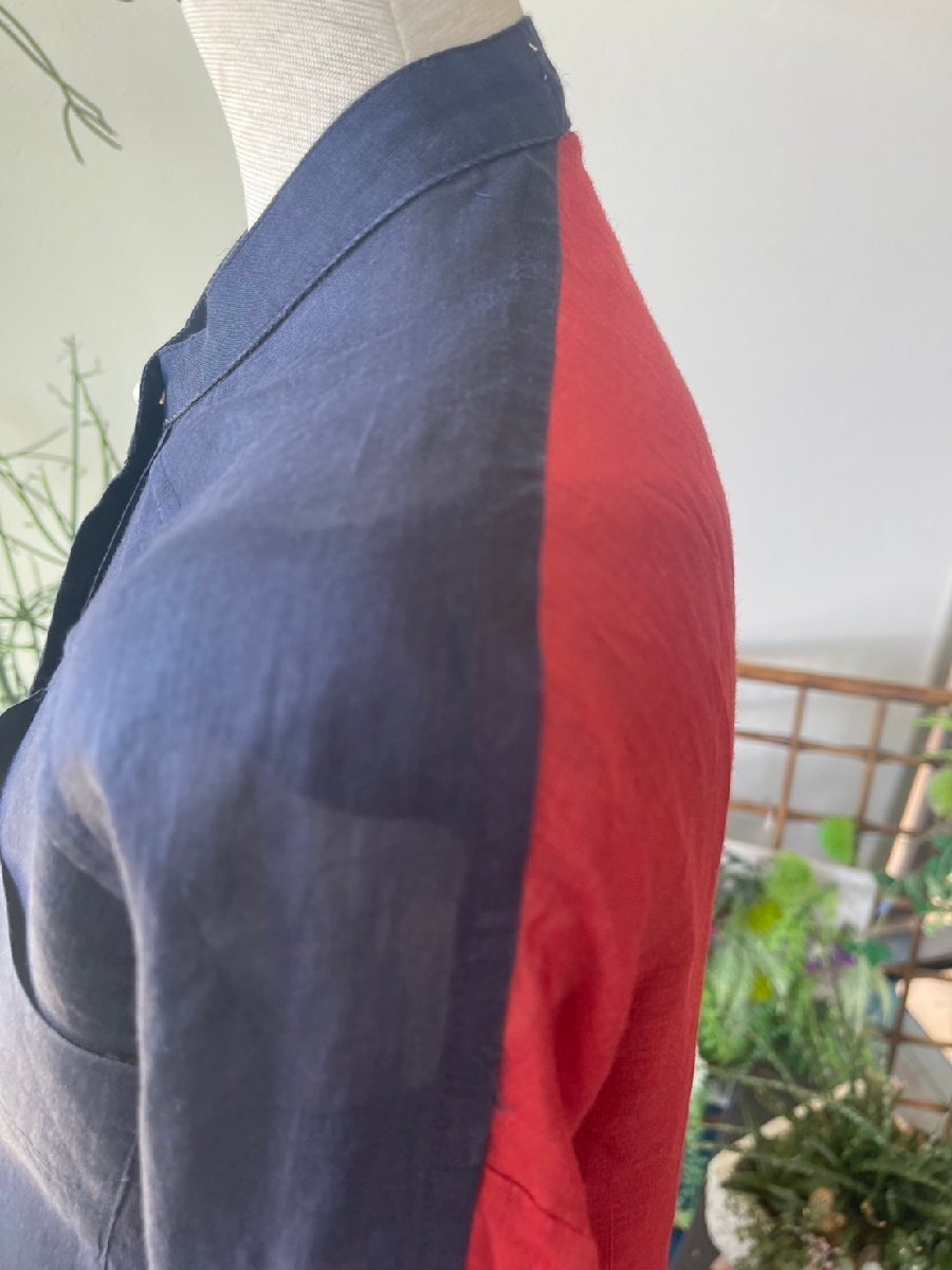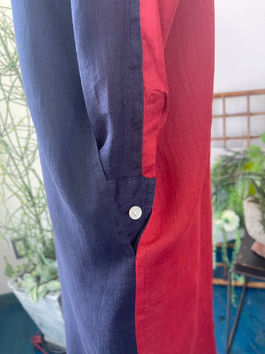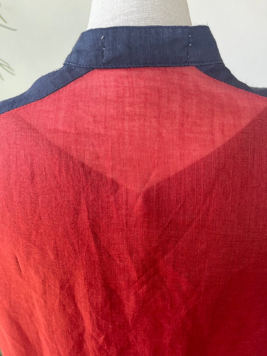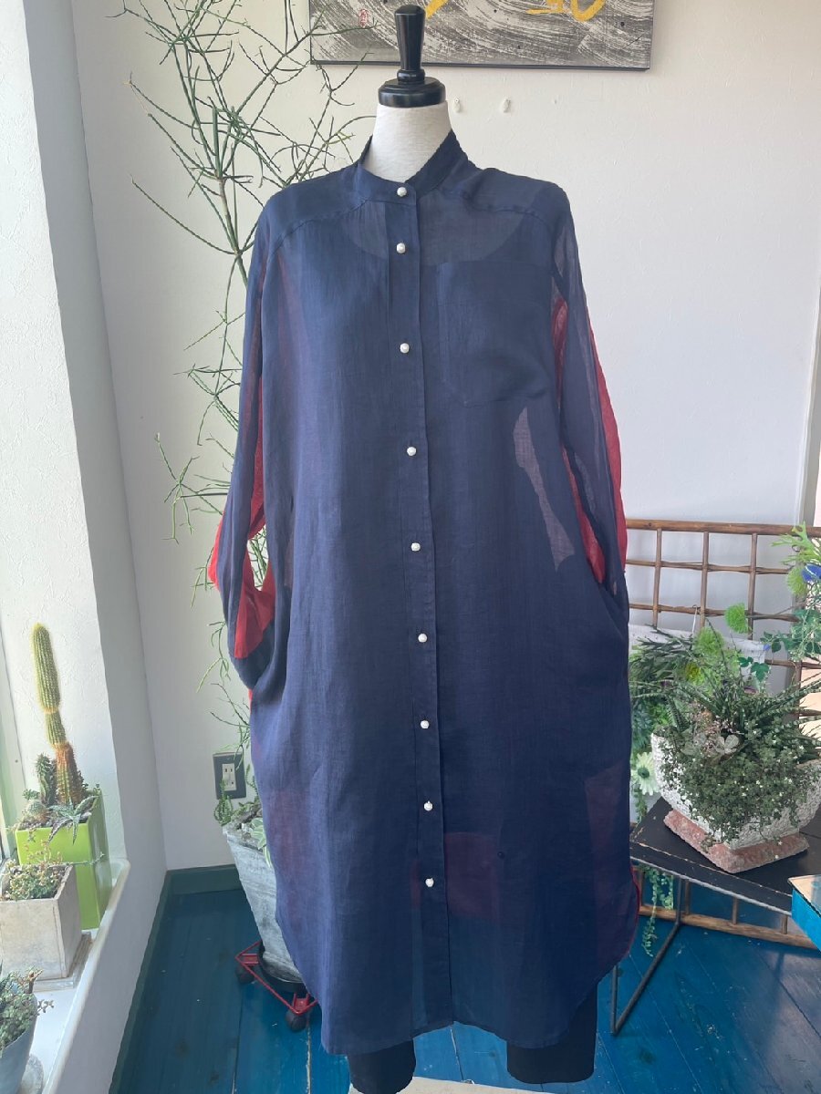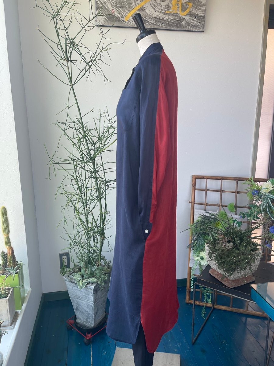 レディース トップス シャツ ブラウス ロング 長袖 透け感 バイカラー おしゃれ ミセス 個性 美品