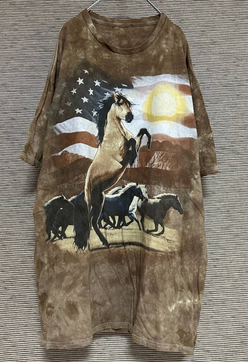 アニマル 半袖Tシャツ 馬 アメリカ ブラウン 荒野 タイダイカラー@9 古着 入手困難 激レア 希少 人気 ビッグサイズ ゆるだぼ 收藏