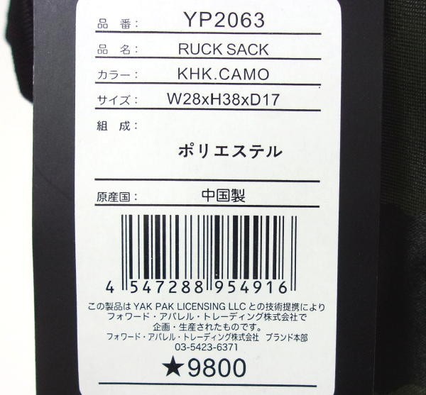 新品★YAKPAK ヤックパック★リュック★バックパック★カモフラ★迷彩 收藏