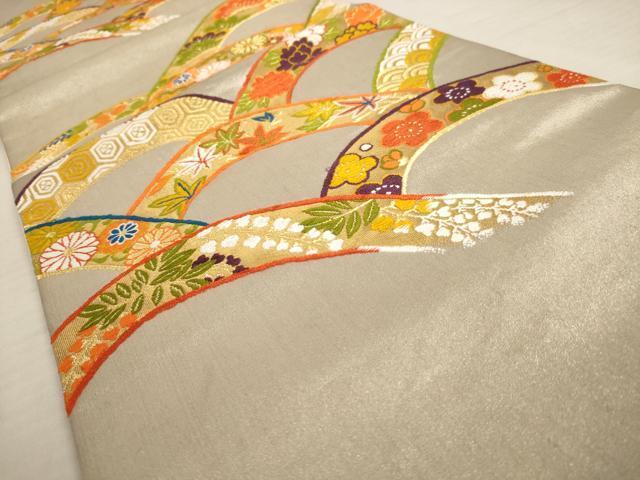 平和屋着物◎六通柄袋帯 唐織 立波花文 金銀糸 正絹 逸品 AAAU8954dt 收藏