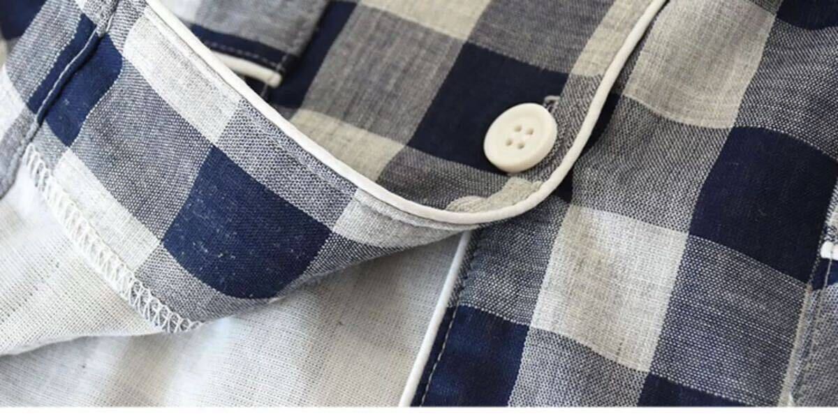 パジャマメンズXL綿ダブル2重ガーゼ上下セットチェック柄ネイビールームウェア上質な睡眠コットン介護入院部屋着快眠 收藏
