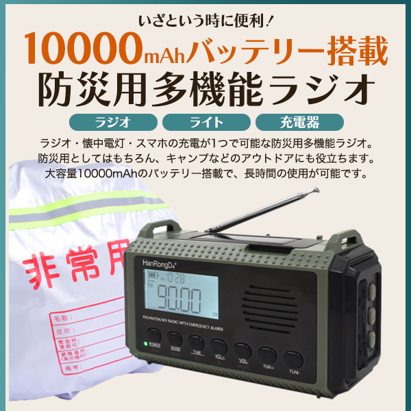 防災ラジオ 多機能 ソーラー充電 手回し 10000mAh 乾電池 スマホ充電 懐中電灯 充電機能付き 防災用 非常 災害対策 AM FM 時計付 收藏