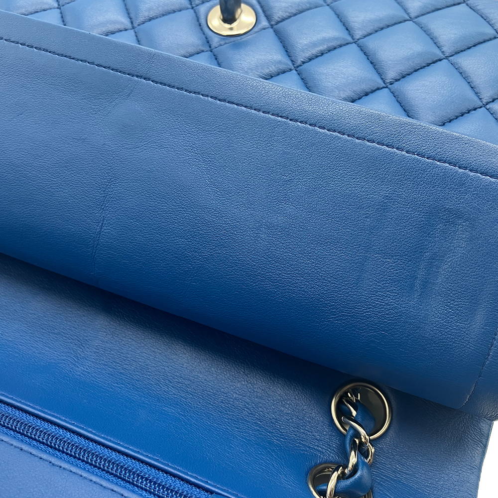 シャネル CHANEL マトラッセ25 Wフラップ Wチェーン ショルダーバッグ ラムスキン A01112 ブルー シルバー金具 レディース 收藏
