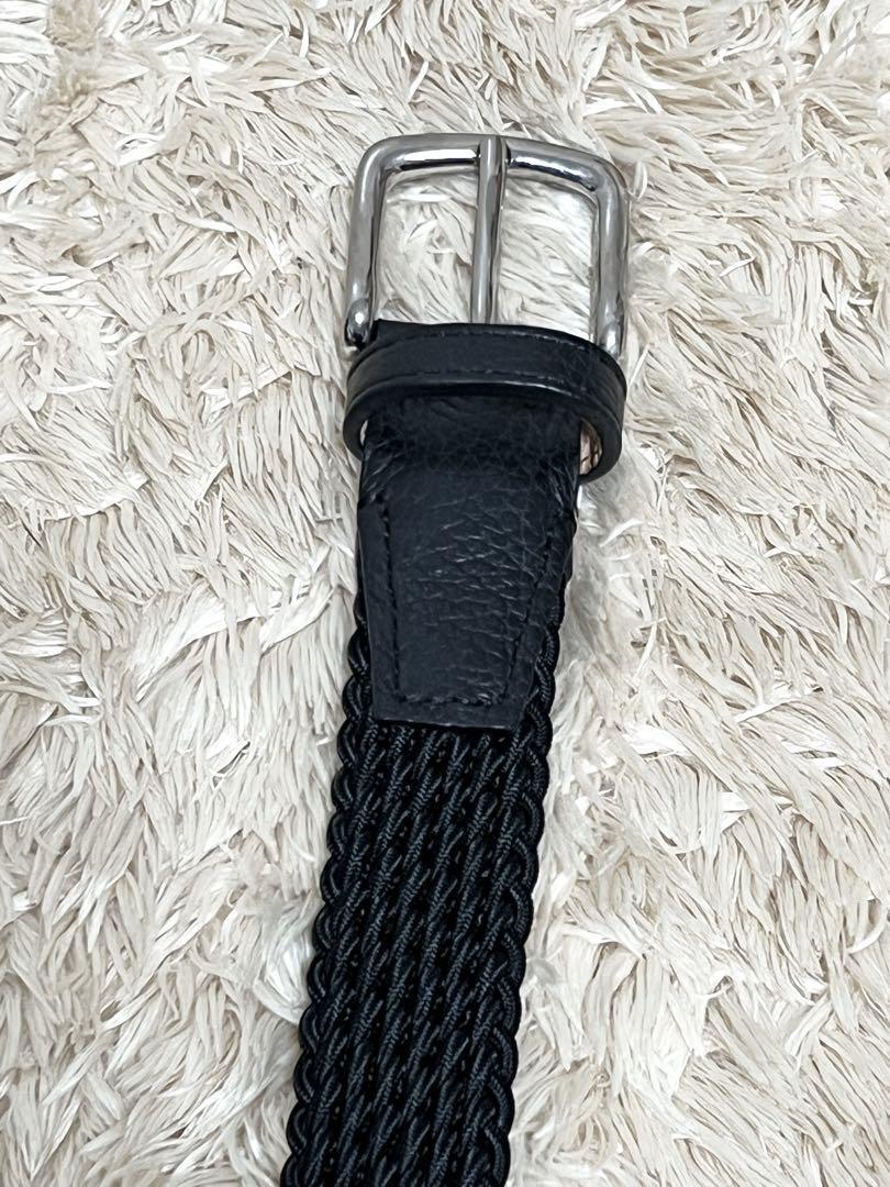 即決★美品 イタリア製 Larcobaleno★L コンビレザーメッシュベルト ラルコバレーノ 黒 ブラック ゴム クラシコ ドレス 收藏