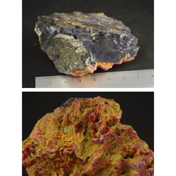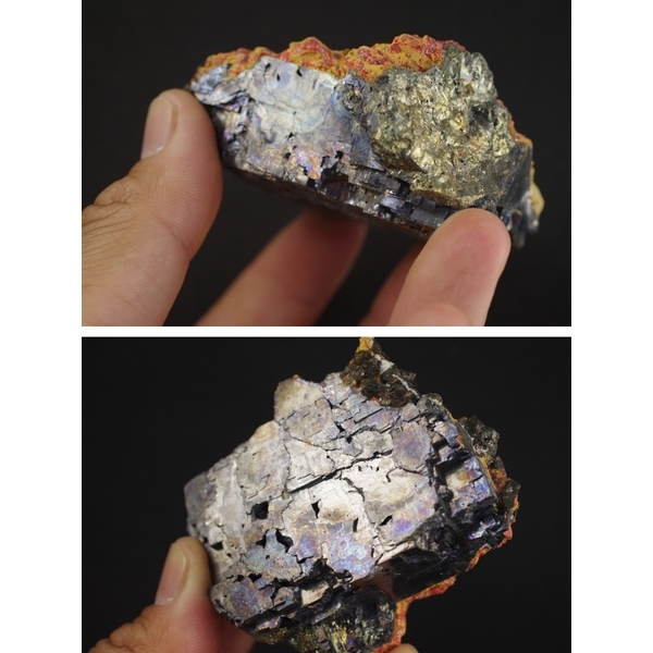 ペルー産リアルガー(鶏冠石)とパイライト(黄鉄鉱)が共生した結晶。