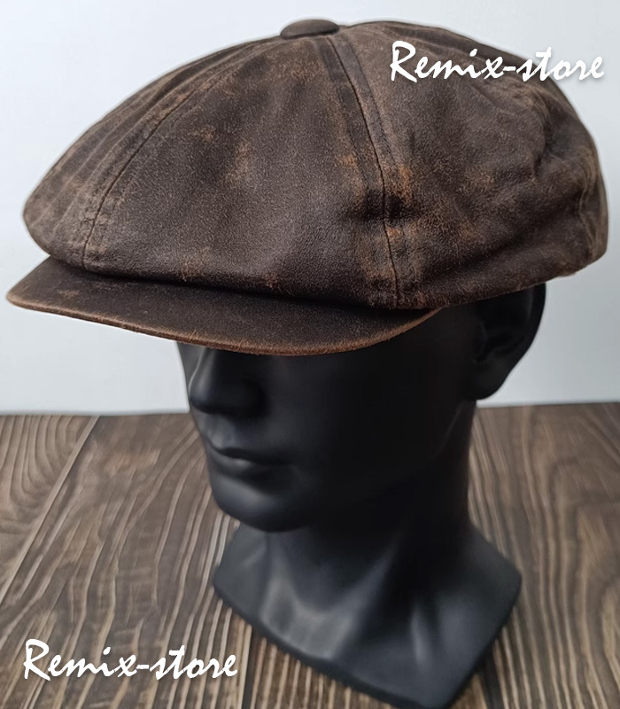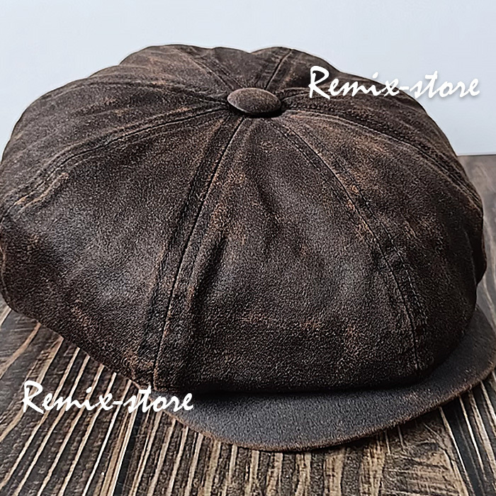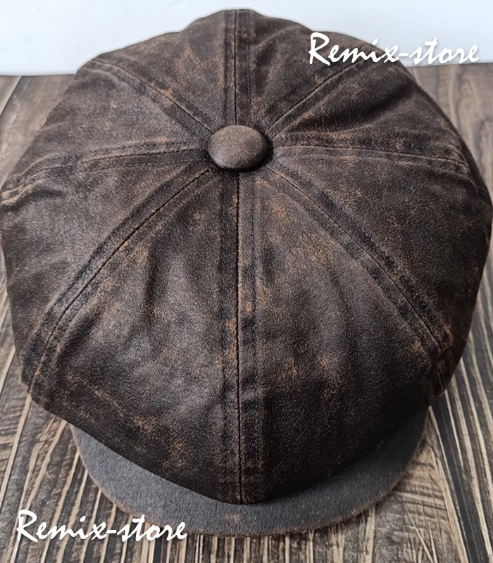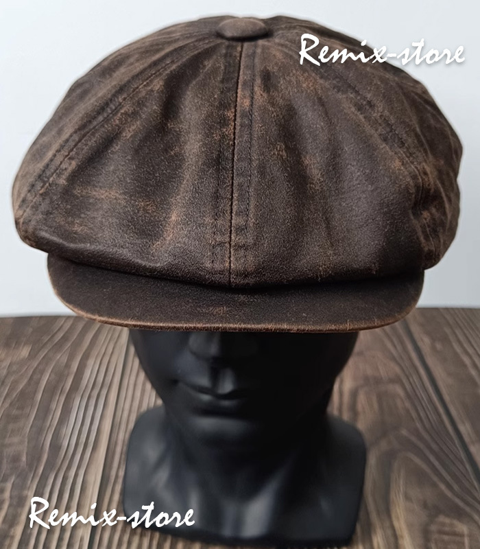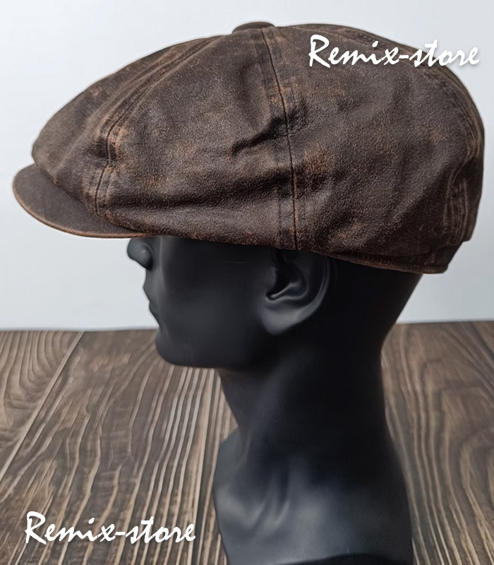 ★オールドファン必見 大きいサイズ NEWSBOY ヴィンテージ加工 コーティング キャスケット レザー ビンテージ XL サイズ60cm 61cm★562 收藏