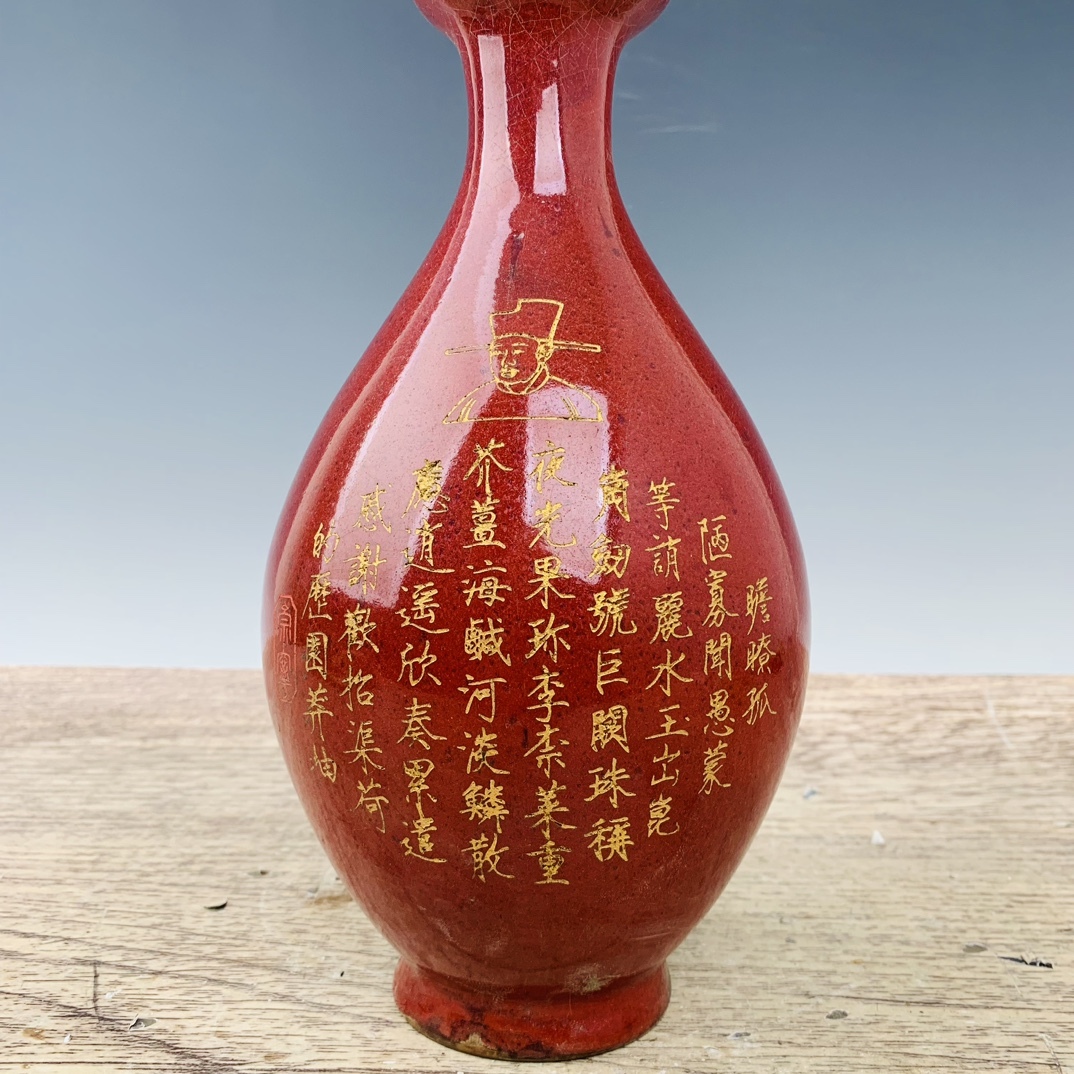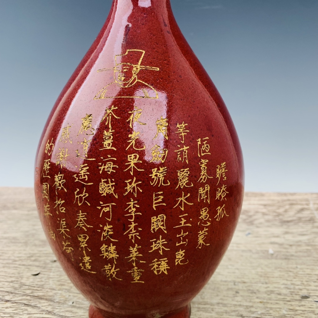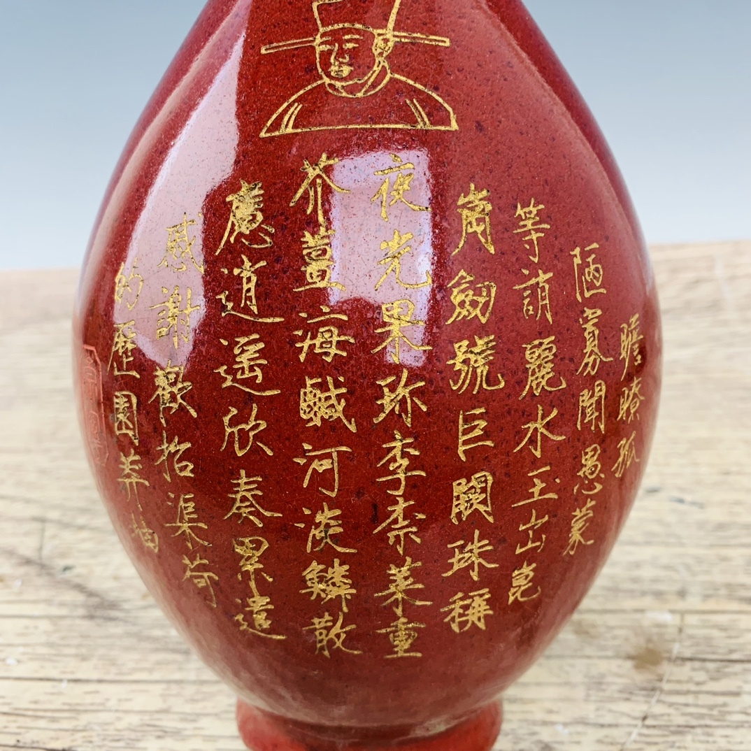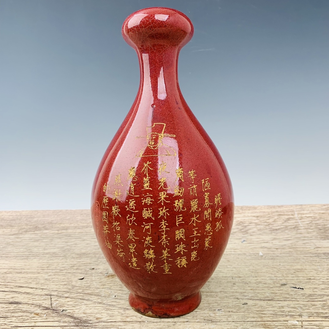 秘藏 宋時代 時代物 きんど磁器痩金体刻詩花瓶唐物 陶磁器 共箱付き 古賞物 置物 中国美術 高さ30.5 cm、直径15 cm 古物保証 ly8.24 收藏