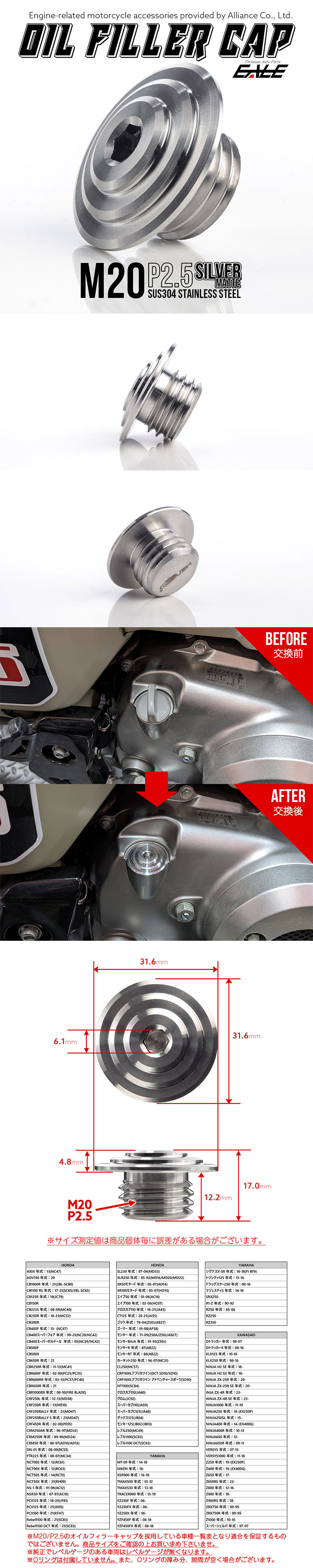 オイルフィラーキャップ M20 P2.5 六角穴 ステンレス製 マットシルバー 汎用 TH0475 收藏