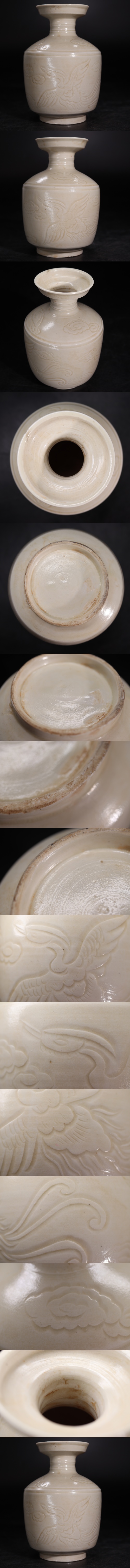 | 時代 李朝 白磁 鳳凰図 陰刻 花瓶 / 朝鮮古美術 花器 壺 煎茶飾 .G2541 |
