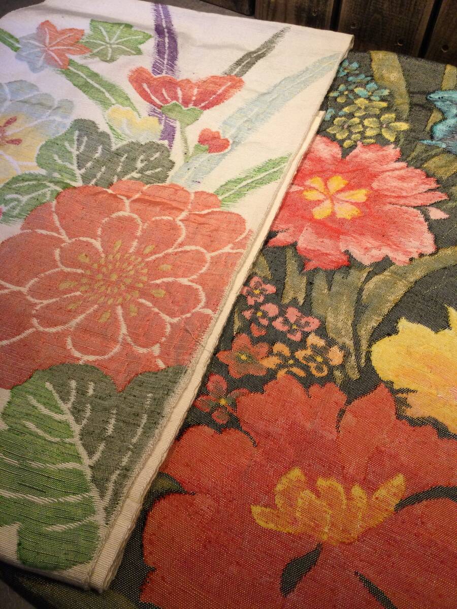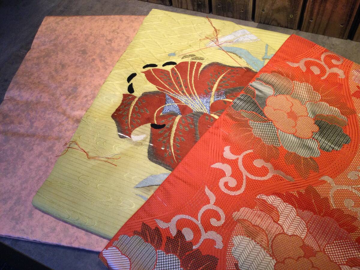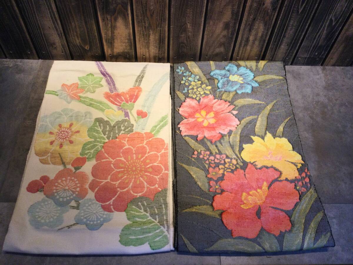 美品・未使用・保管品 着物 帯 まとめて11点セット 和服 和装 花柄 刺繍 金糸/銀糸 ハンドメイド リメイク素材 現状渡し 袋帯 收藏