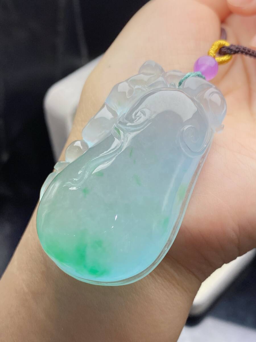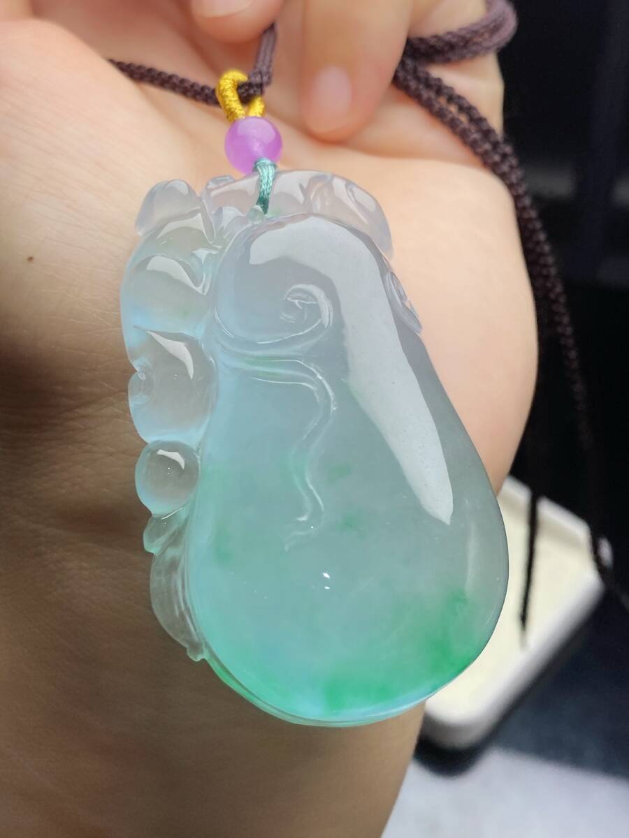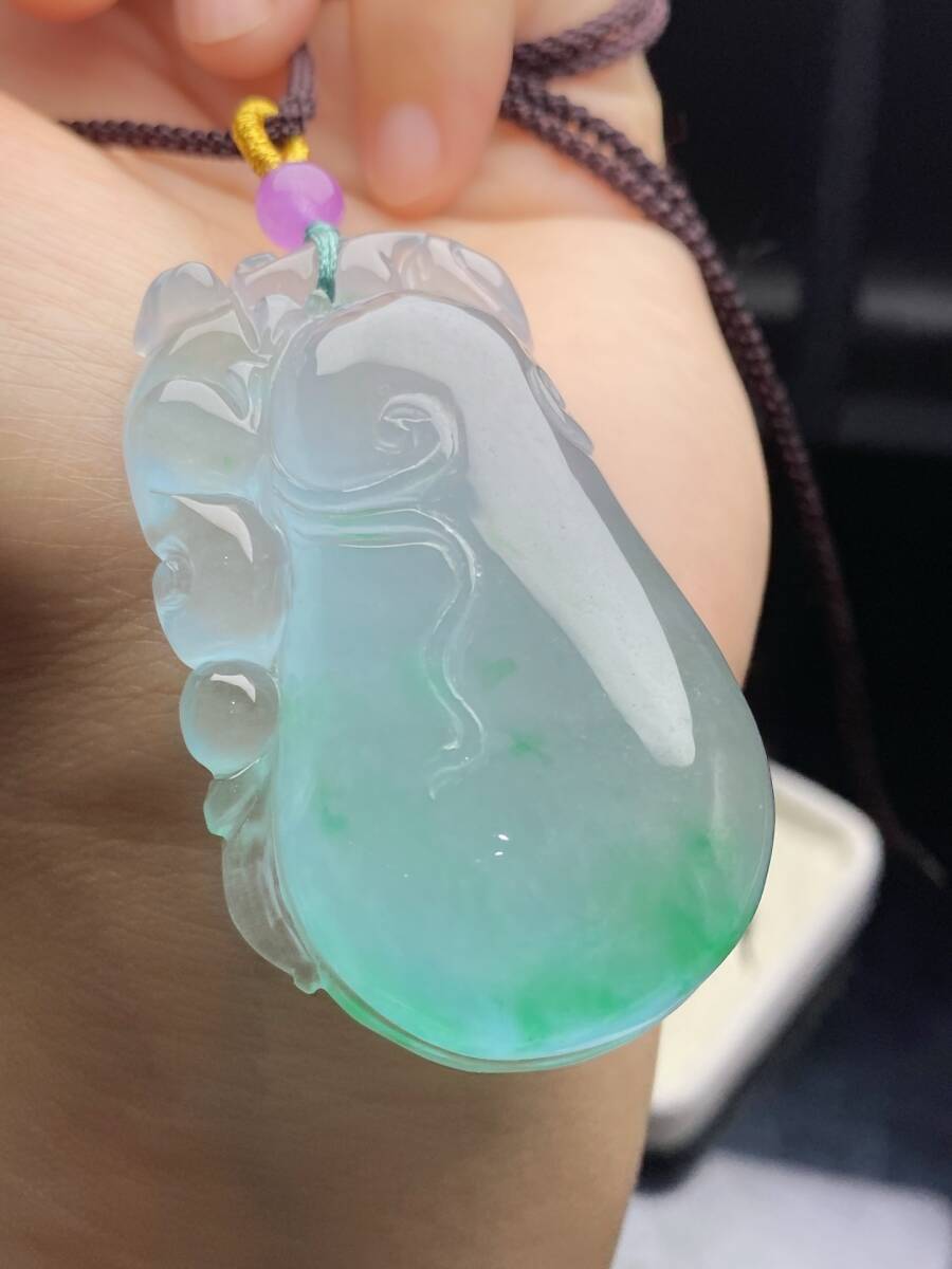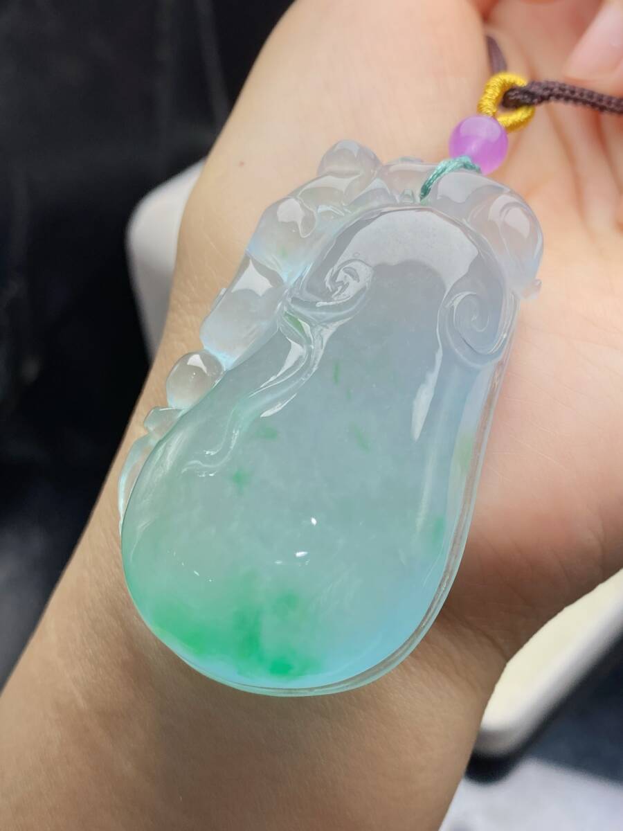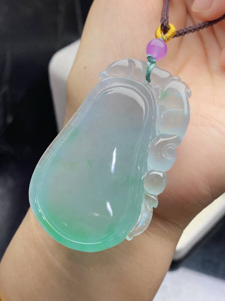 Aグレード翡翠 冰種翡翠 「福寿如意」 帝王綠 高氷 吊墜 首飾 自戴 贈り物 箱付き時代物 骨董品 旧家蔵出し 唐物 中国古玩 古美術品9.15 收藏