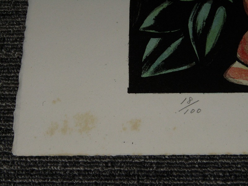 | 商品説明 | 【必ずご確認ください】 落札から24時間以内に取引連絡のいただけない方、72時間以内に入金できない方の入札はご遠慮下さい。 【重要】 商品説明・画像・注意事項・発送詳細を全てご確認及びご納得のうえでのご入札をお願いいたします。 また、【中古品】となります事を十分ご検討いただいたうえでのご入札をお願いいたします。 トラブル防止の為、少しでも入札に不安がある方、神経質な方のご入札はご遠慮下さい。 ご理解、ご了承の程、宜しくお願い致します。 【特記事項】 画像にてご判断できる方のみ、ご入札下さい。 ※作品→気になる汚れ、ダメージなく良好な状態です。 (作品周りにシミ少々あり) ※額→経年感などありますので、あくまでもオマケ程度とお考え下さい。 ※付属品は画像にあるもので全てです。 ※その他、画像にてご判断下さい。 【真作保証】 公認で作成したリトグラフ、木版画などの版画作品なども対象でございます。 万が一、真作でなかった場合、返品/全額のご返金にて対応させていただきます。 商品到着後7日以内にお申し出下さい。 尚、到着後、7日を過ぎた場合、この限りではございません。 【額サイズ(約)】 横 630mm 縦 490mm 【作品サイズ(約)】 横 390mm 縦 315mm ★ご不明な点がありましたら、入札の前に必ず[質問欄]よりお問い合わせをお願いいたします★ |