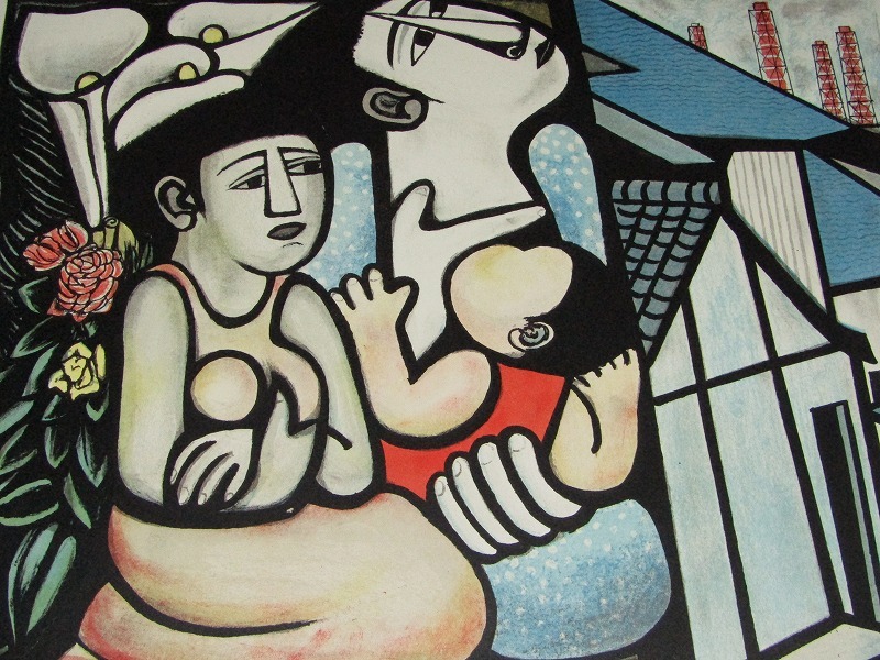 【真作】北川民次 リトグラフ「哺育」額装 直筆サイン エディション ij16-8377[GGG] 收藏