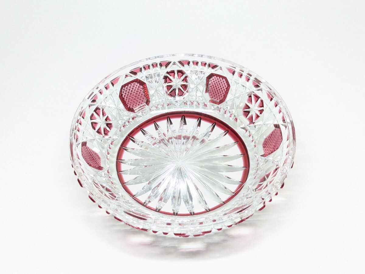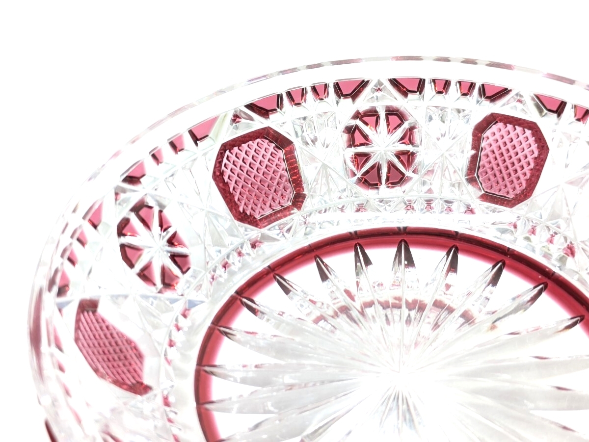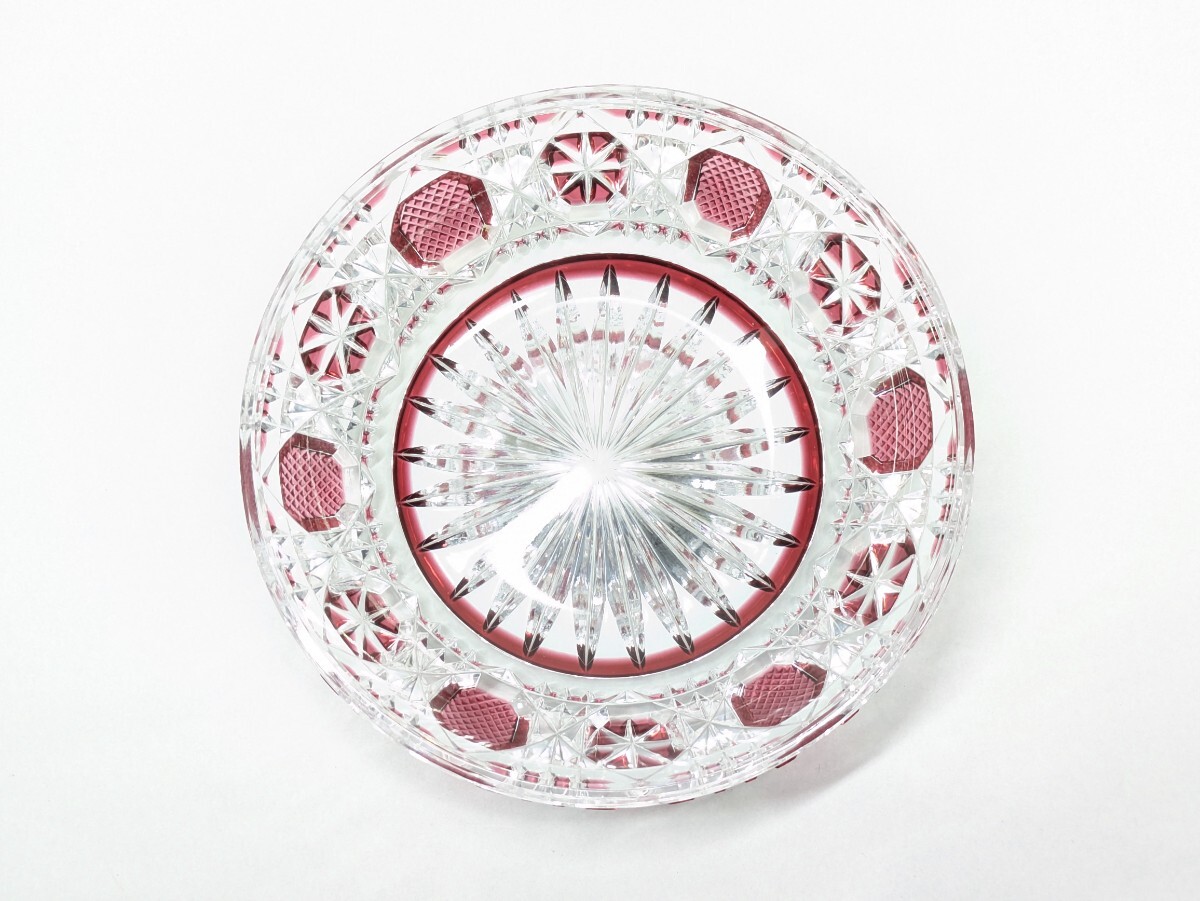 アロイス・シュヴァルツ(ALOIS SCHWARZ) 作 薩摩切子 赤色 小皿 / カメイガラス 復刻薩摩切子 カットガラス 色被せガラス 收藏