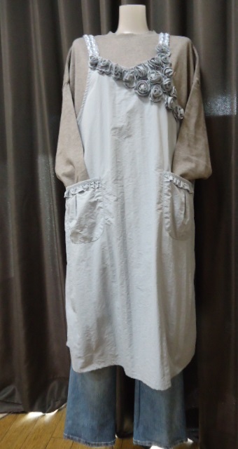 かわいいエプロン かぶり 無地ブルー色 ★bonte★ ナイロン100% M~L寸 着丈98cm Kー4649 收藏