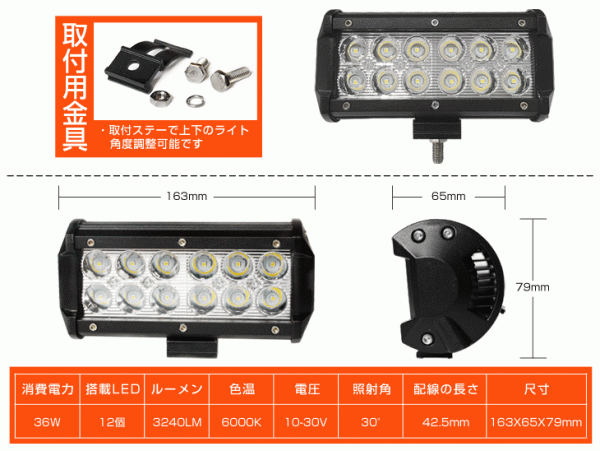 激安2個セット OSRAM製LEDチップ12個搭載 36W LED作業灯 DC10/30v 3240lm 狭角 IP67夜釣り/船舶 6000K 1年保証(206B) 收藏