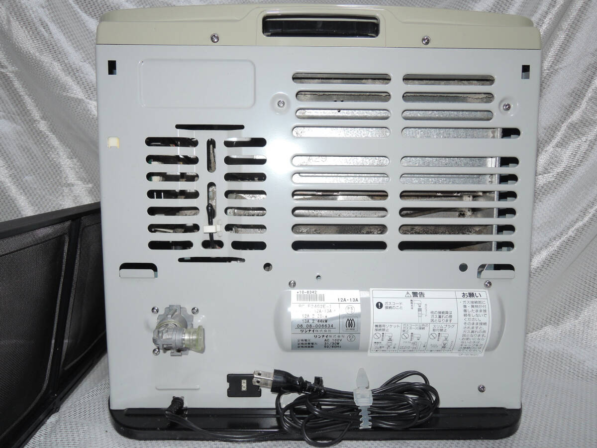 | [管理番号:005] リンナイ ガスファンヒーター 都市ガスス 12A・13A用 ・RC-F2402E-1 (12A 2.28kW / 13A 2.44kW) 2006年製 【付属品】 ・2mホース ・3mホース ・4.9mホース 計3本付き 【状態:中古品 (ジャンク扱い)】 程度良 完動品 (完動品ですが火を扱う物なので一切責任を負えません。ジャンク扱いでの出品です。) *後ろのフィルターのネジが欠品です。 詳細は下記リンクの画像にてご確認ください。 他にも画像が御座いますので宜しければご覧になってください。 RC-F2402E-1 | ||