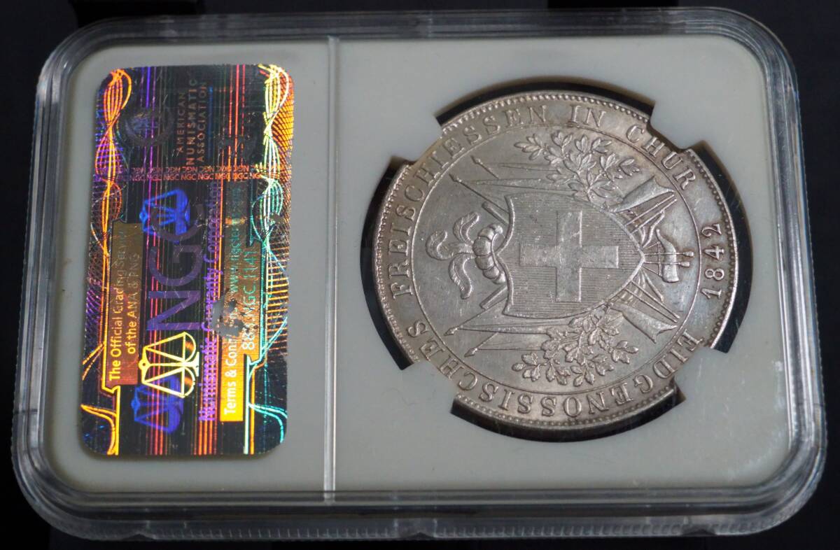 【高鑑定 スイス射撃祭の初年号】1842 スイス 射撃祭 グラウビュンデン 4フランケン 銀貨 NGC MS63 アンティークコイン 古銭 收藏