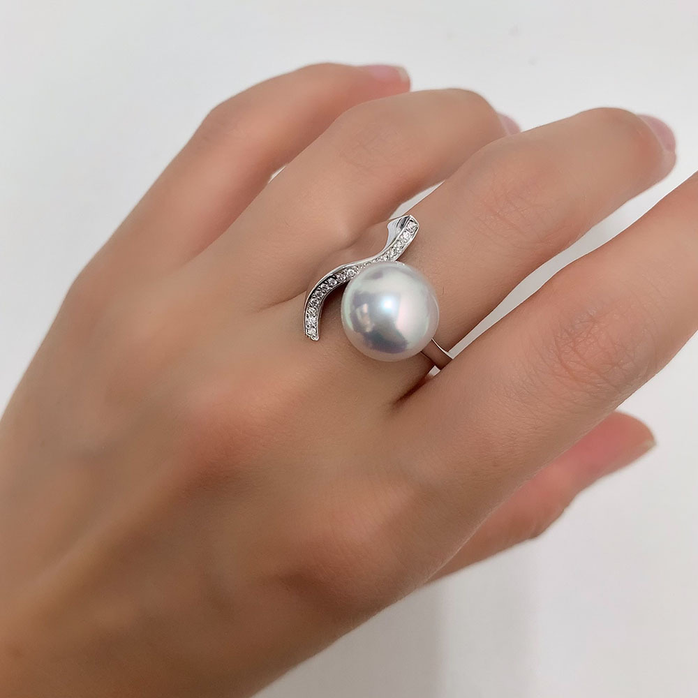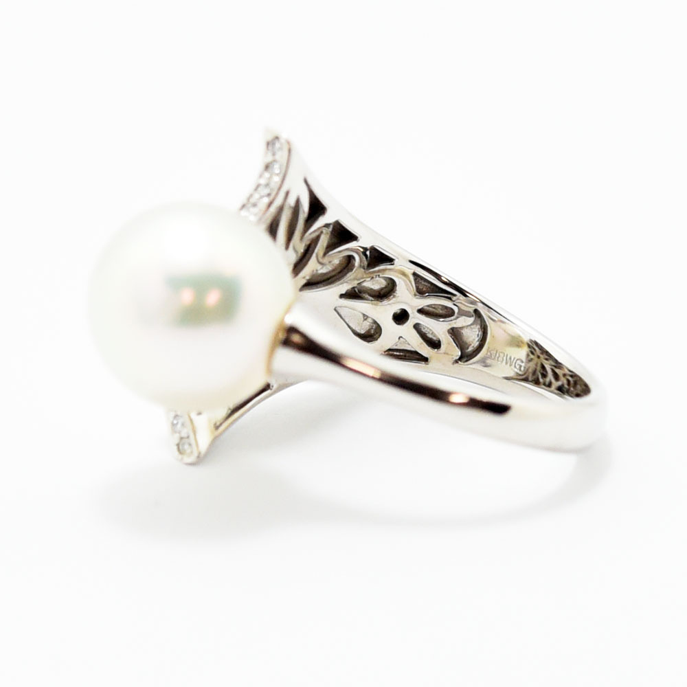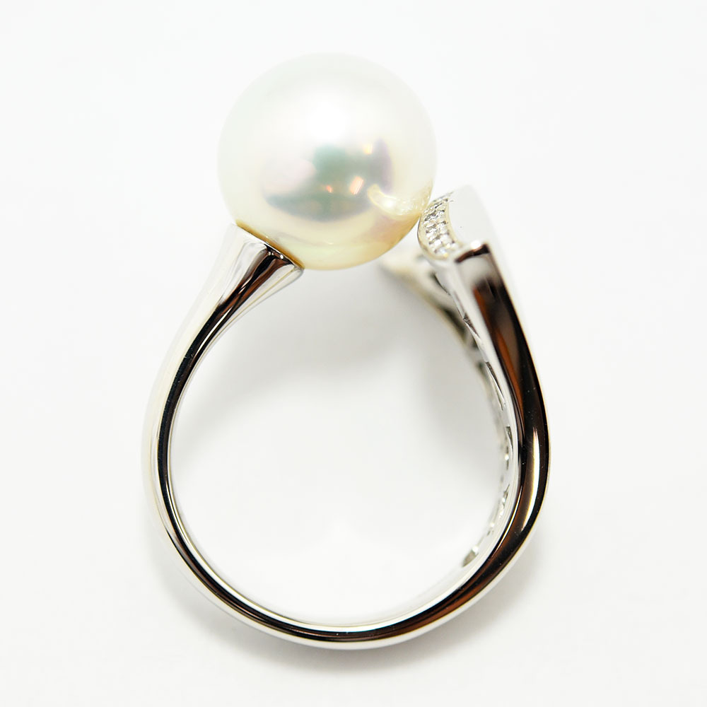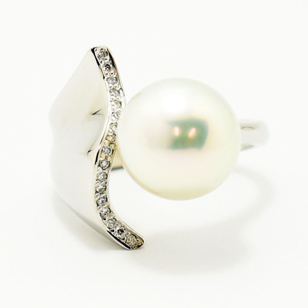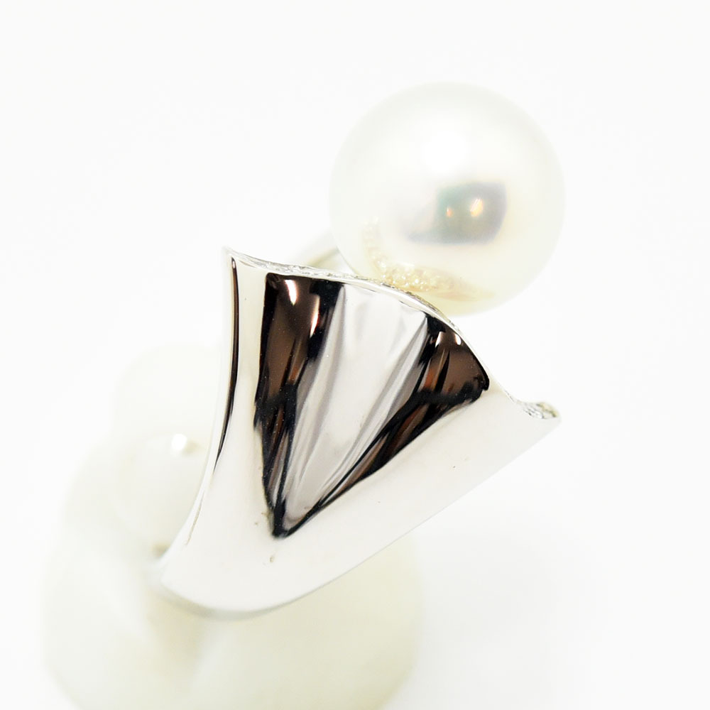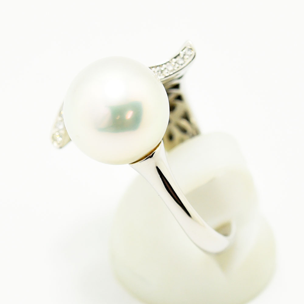 | テリの良いパールにダイヤモンドが煌めく、上品なデザインのリングです。新品磨き仕上げ済みです。 |