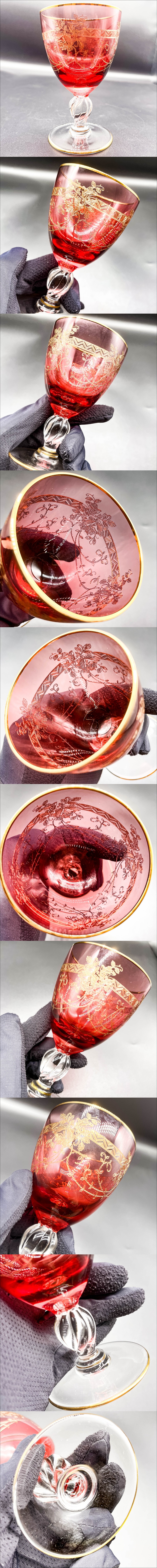 【モーゼル】クランベリーレッド 金彩 ニードルエッチング フッテッドグラス Moser チェコ製 ヴィンテージ アールデコ [SN101204] 收藏