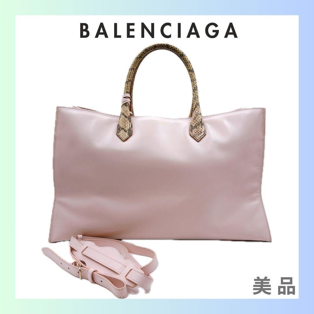 バレンシアガ レザー×パイソン 2WAYトートバッグ ピンク 收藏