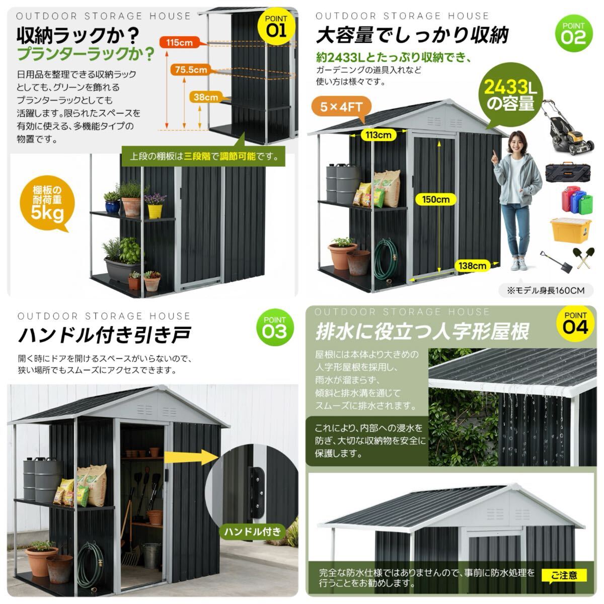 新品 物置 スチール物置 物置き 大容量 屋外収納 スチール製 倉庫 棚付き 收藏