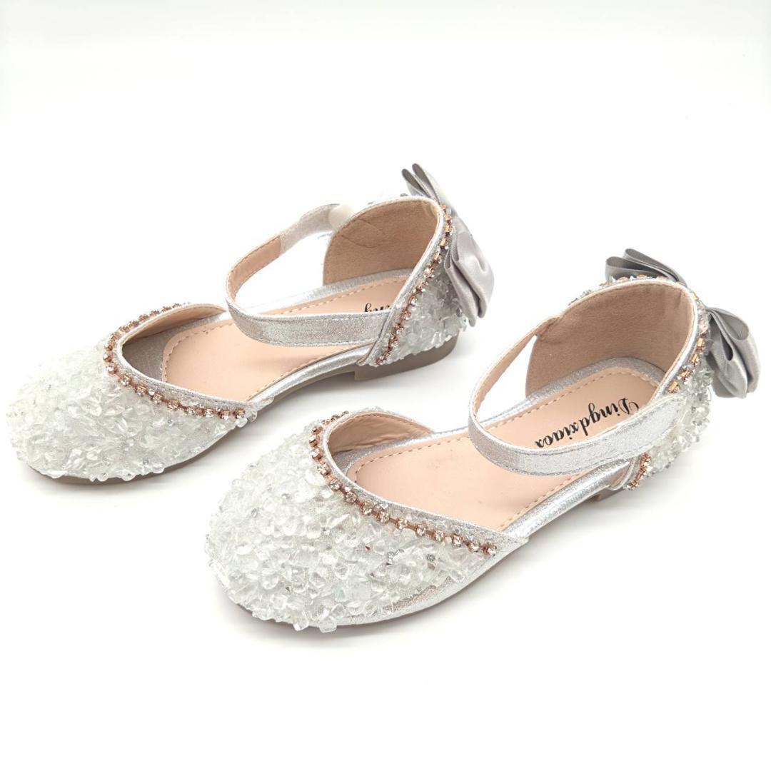 【大人気♪】17.5cm シルバー キッズ フォーマルシューズ ビーズ ストーン 收藏