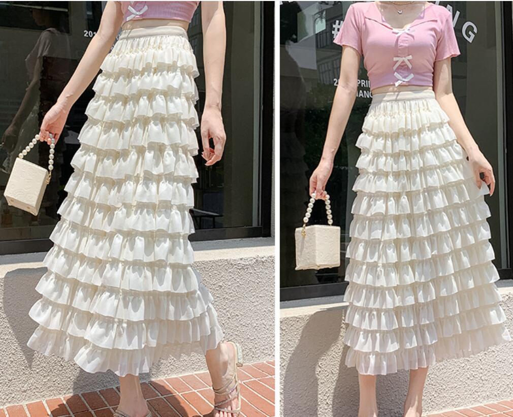 上質ロングスカート チュールスカート レディース INS 韓国ファッション デザイン 春夏 XL ブラック 收藏