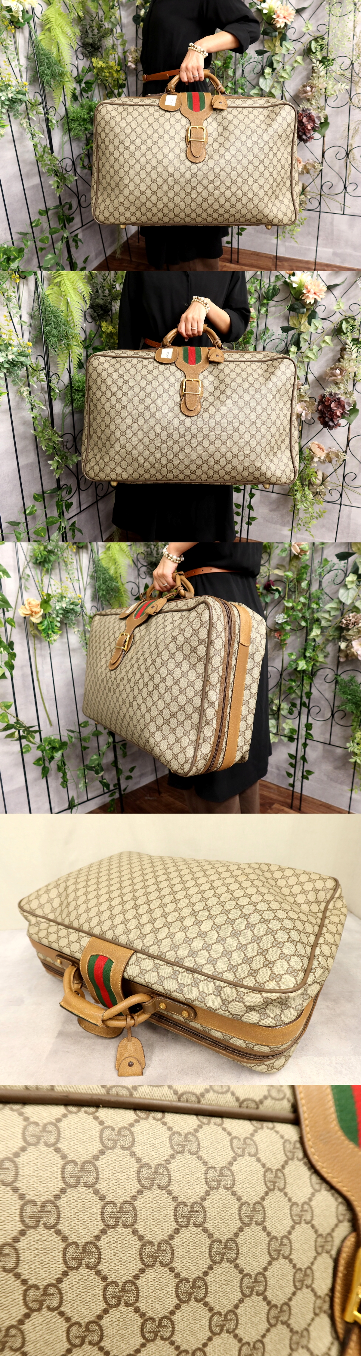 超美品●GUCCI オールド グッチ●シェリー●GGスプリーム●PVC カーフ レザー 本革●トランクケース●茶系●G金具●ヴィンテージ●Js61377 收藏